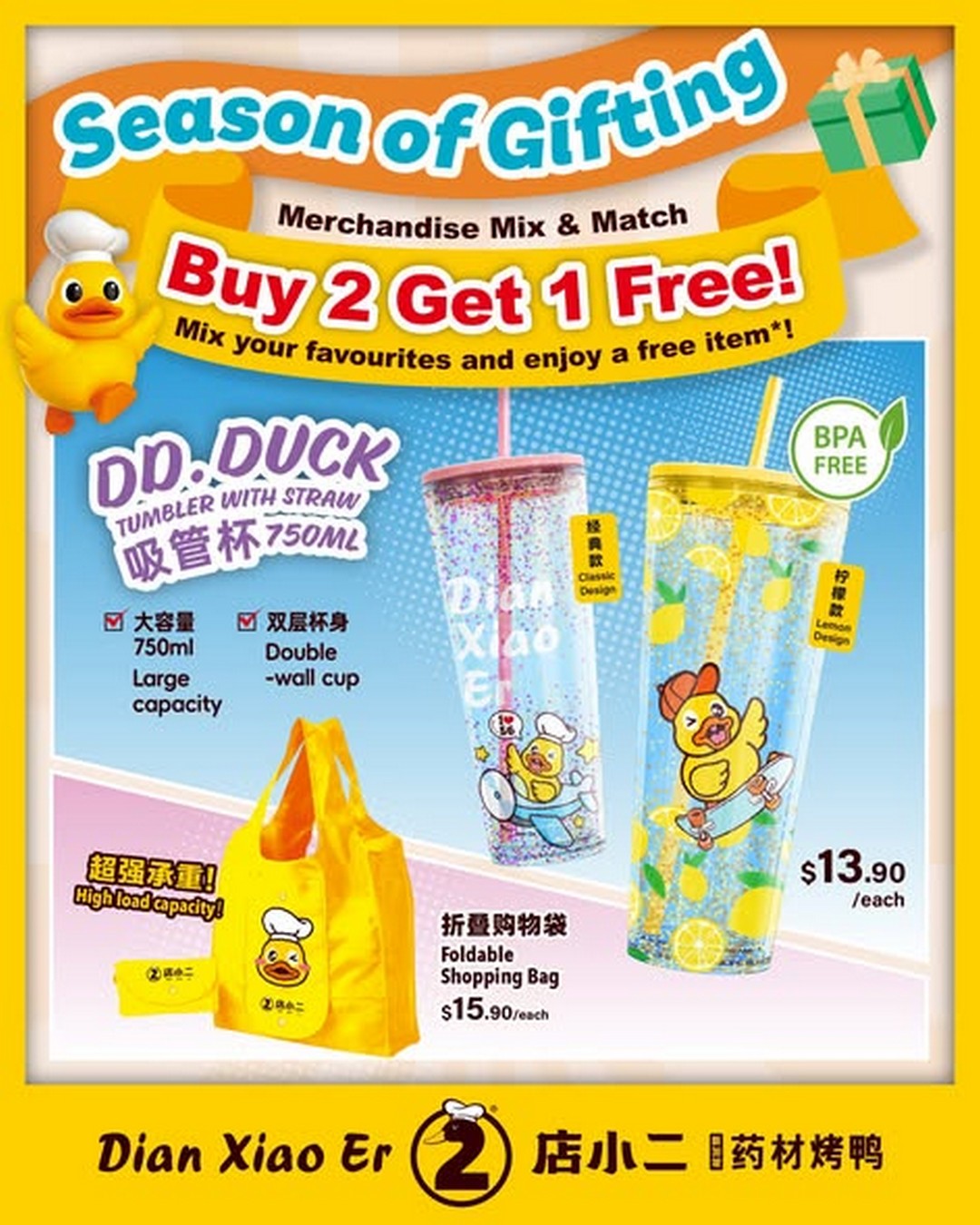 Dian Xiao Er’s holiday line this year features a selection of adorable merchandise showcasing the cheerful and quirky DD.Duck. This mascot has become a beloved part of the brand’s identity, and the festive merchandise gives fans and diners another reason to appreciate the character.