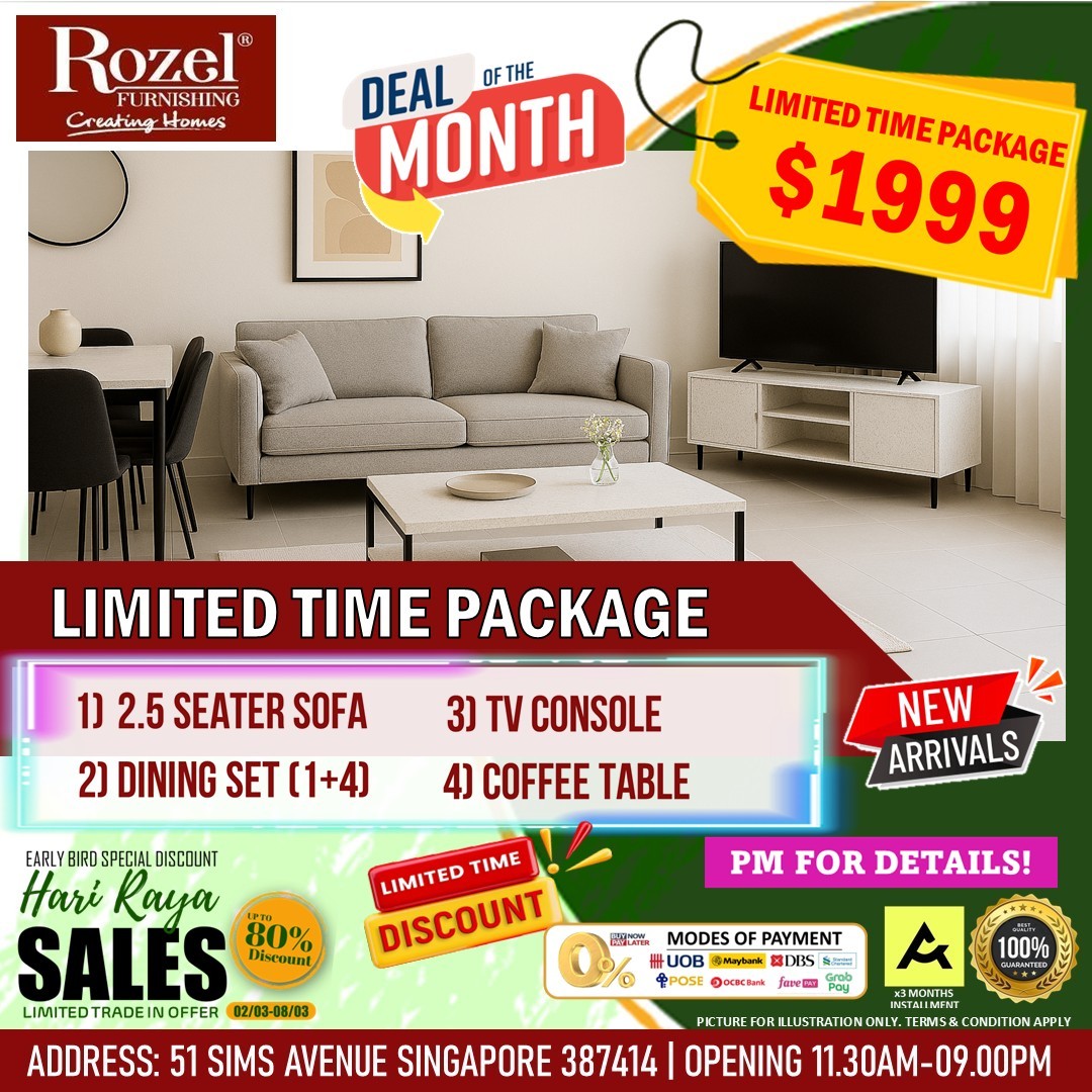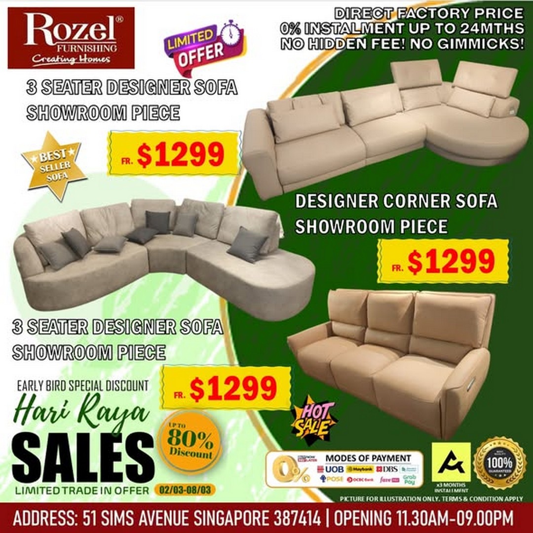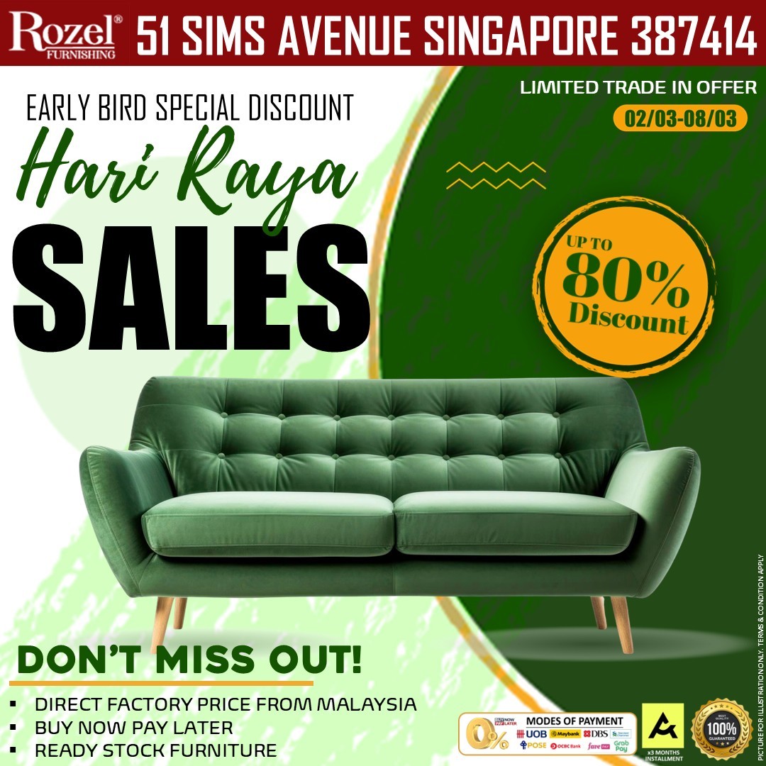If furnishing your home has been on their mind, Rozel Furnishing at 51 Sims Avenue is rolling out an unmissable Early Bird Hari Raya Sale that promises a blend of affordability, convenience, and style. For anyone looking to revamp their living space, this is the perfect opportunity to secure high-quality furniture while taking advantage of generous promotions, flexible payment options, and a chance to participate in a lucky draw.