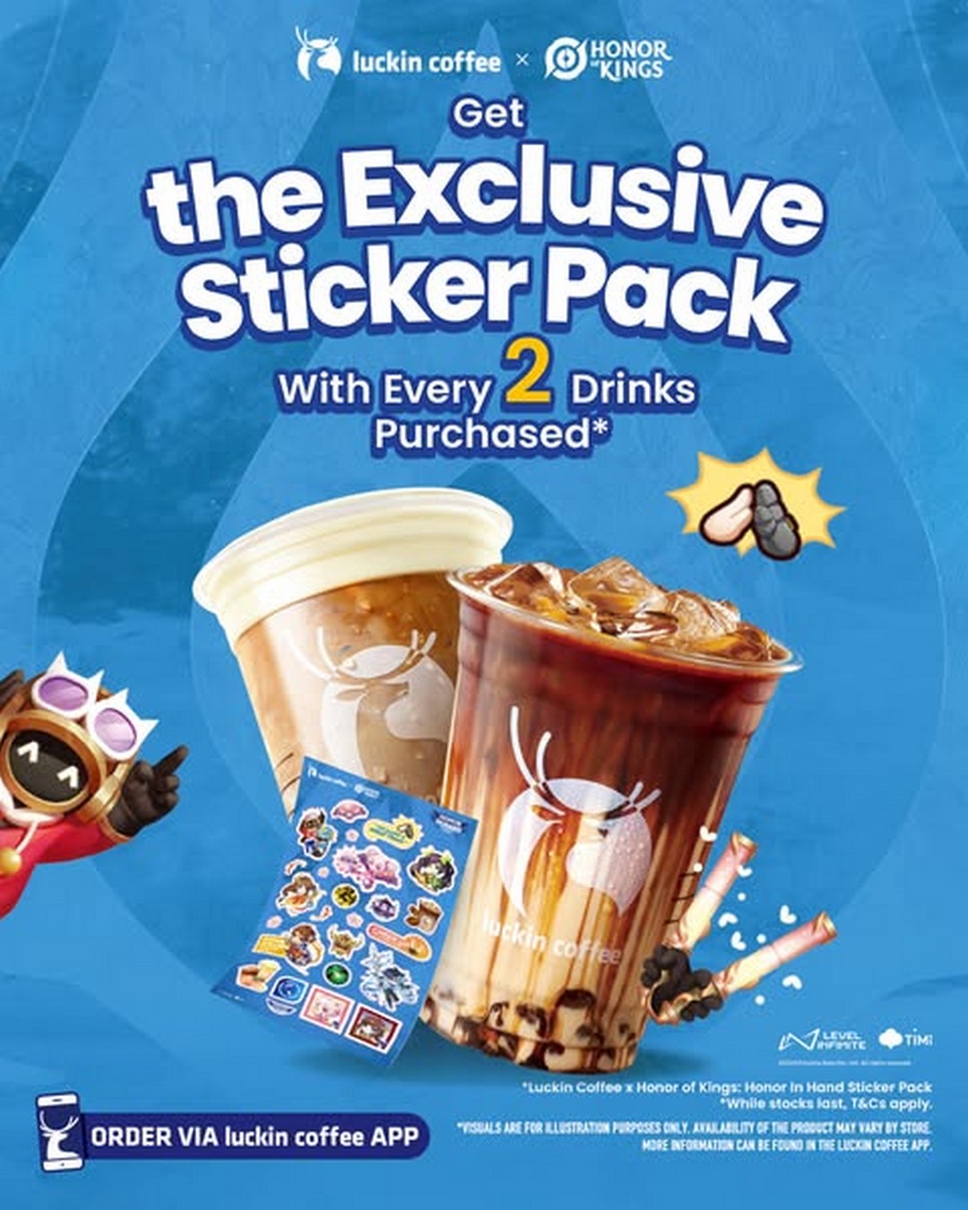 Buy any 2 drinks in a single transaction → Receive Luckin Coffee x Honor of Kings: Honor In Hand Sticker Pack