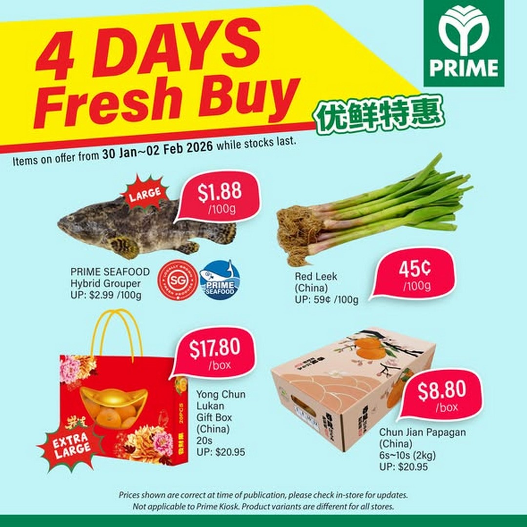 Overall, the Prime Supermarket 4-Day Fresh Buy promotion from 30 January to 2 February 2026 is a solid example of a practical, value-driven sale. It focuses on everyday essentials, fresh ingredients and household necessities, all at reduced prices for a limited time. For shoppers who appreciate good value and thoughtful promotions, this is certainly a deal worth exploring. Making a planned visit during these four days could lead to meaningful savings and a well-stocked home.
