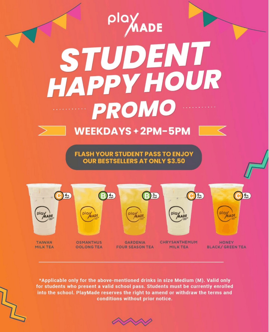 What makes this Student Happy Hour particularly enjoyable is that PlayMade’s drinks are crafted with care, focusing on both quality ingredients and flavour profiles that stand out. For many students, having access to premium tea at an unbeatable price is not only a treat but a way to unwind after classes. Whether you’re studying for exams, catching up on assignments, or just looking for a mid-day indulgence, this promotion is a small luxury that won’t cost much.