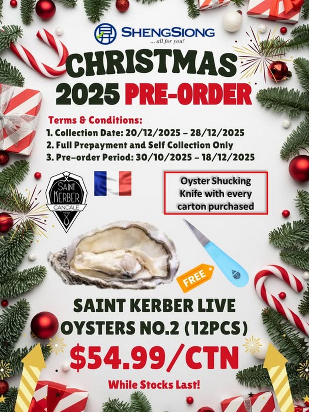 In conclusion, Sheng Siong Supermarket’s Christmas oyster promotion is an opportunity not to be missed. The combination of high-quality SAINT KERBER live oysters, the complimentary shucking knife, and the convenience of pre-ordering and collection makes this deal both practical and luxurious. Whether it’s for a small gathering or a large Christmas feast, the oysters provide a fresh, elegant touch that will surely impress everyone at the table.