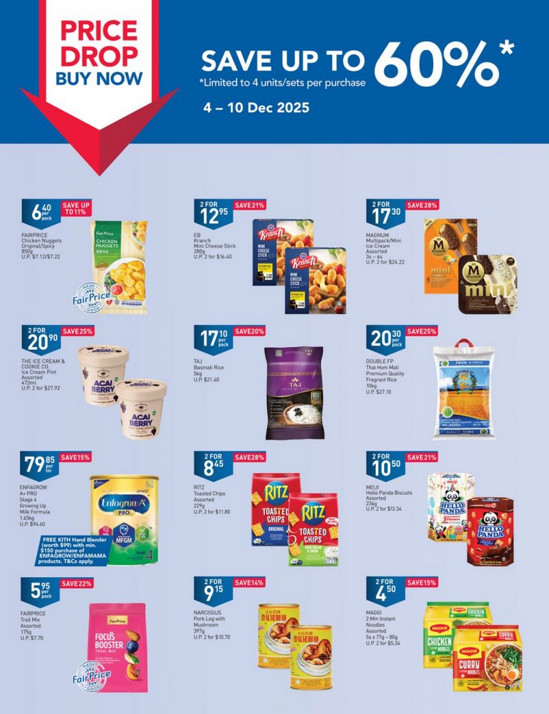 This is an ideal time for smart shoppers to make the most of seasonal offers and prepare for the coming weeks without overspending. Don’t miss out—head to NTUC FairPrice between 4 and 10 December to enjoy these Must Buy Deals while stocks last.