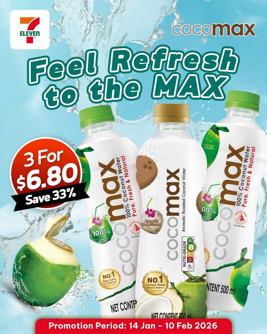 For those looking to refresh and recharge in a healthier, more natural way, 7-Eleven Singapore has rolled out a promotion that is impossible to ignore. From 4 to 10 February 2026, shoppers can enjoy 33% off Cocomax Coconut Water, now available at 3 bottles for just $6.80. Whether you are recovering after a workout, heading back from a long day at the office, or simply in need of a hydrating beverage, this deal makes it an ideal time to stock up.
