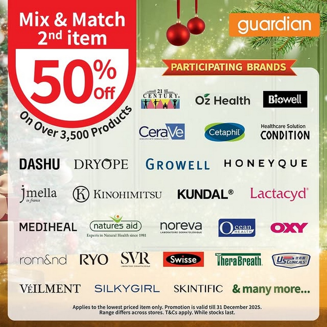 For those who regularly shop for personal care, health essentials, skincare, body products or even small stocking fillers, Guardian is probably already one of the first places they think of. This year, Guardian is rolling out a festive promotion that feels particularly worth exploring: from 4 to 31 December 2025, shoppers can enjoy their second item at 50 per cent off on selected products. Alongside this, those who spend $50 in a single receipt will receive a Christmas scratch card that offers a chance to win prizes worth up to $180,000. For a year-end promotion, this is one that combines both savings and a sense of fun.