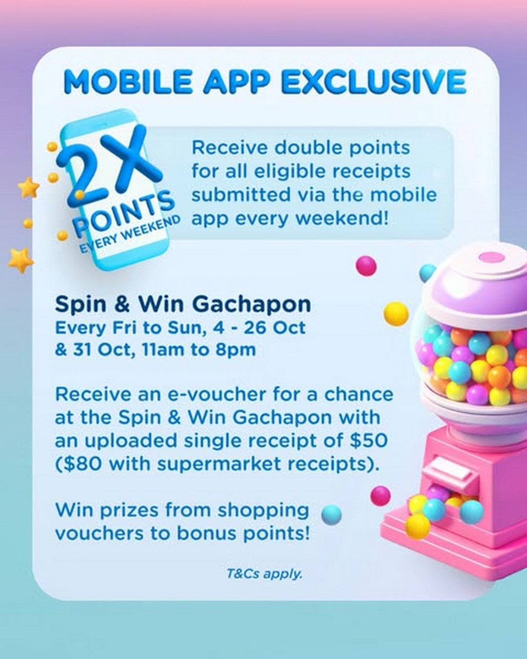 For tech-savvy shoppers, YewTee Point has added an exciting digital twist to their anniversary celebrations. By uploading a single receipt of at least $50 ($80 with supermarket receipts) onto the YTP Rewards mobile app, shoppers receive an e-voucher that grants them a chance to try their luck at the Gachapon spin.