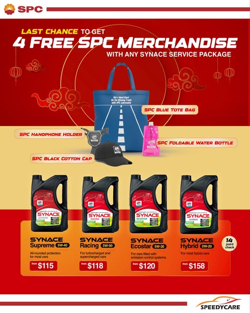 Overall, SPC Singapore’s SpeedyCare SYNACE promotion is an excellent opportunity for anyone looking to get their car ready for the Lunar New Year. It combines practical car maintenance, a detailed inspection, high-quality materials, and thoughtful complimentary items into a single package that offers real value. Drivers not only ensure their vehicle’s performance and safety but also enjoy the added bonus of SPC merchandise—a small reward that makes the entire experience more enjoyable.
