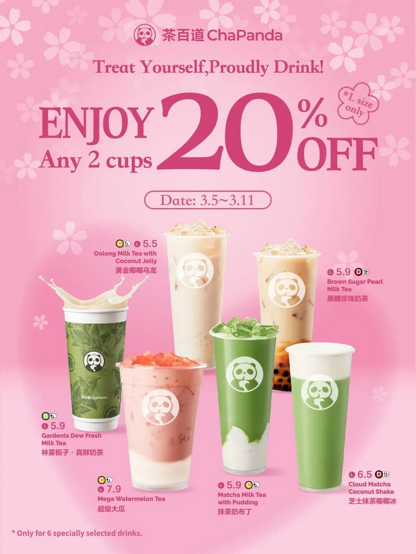 If there is ever a good excuse to slow down, take a breather and treat yourself to something sweet, this is it. From 5 to 11 March 2026, ChaPanda Singapore is rolling out a Girls’Day special that feels simple, thoughtful and genuinely worth heading out for. For one week only, customers can enjoy 20% OFF any 2-cup set when they mix and match from six popular L-size drinks.