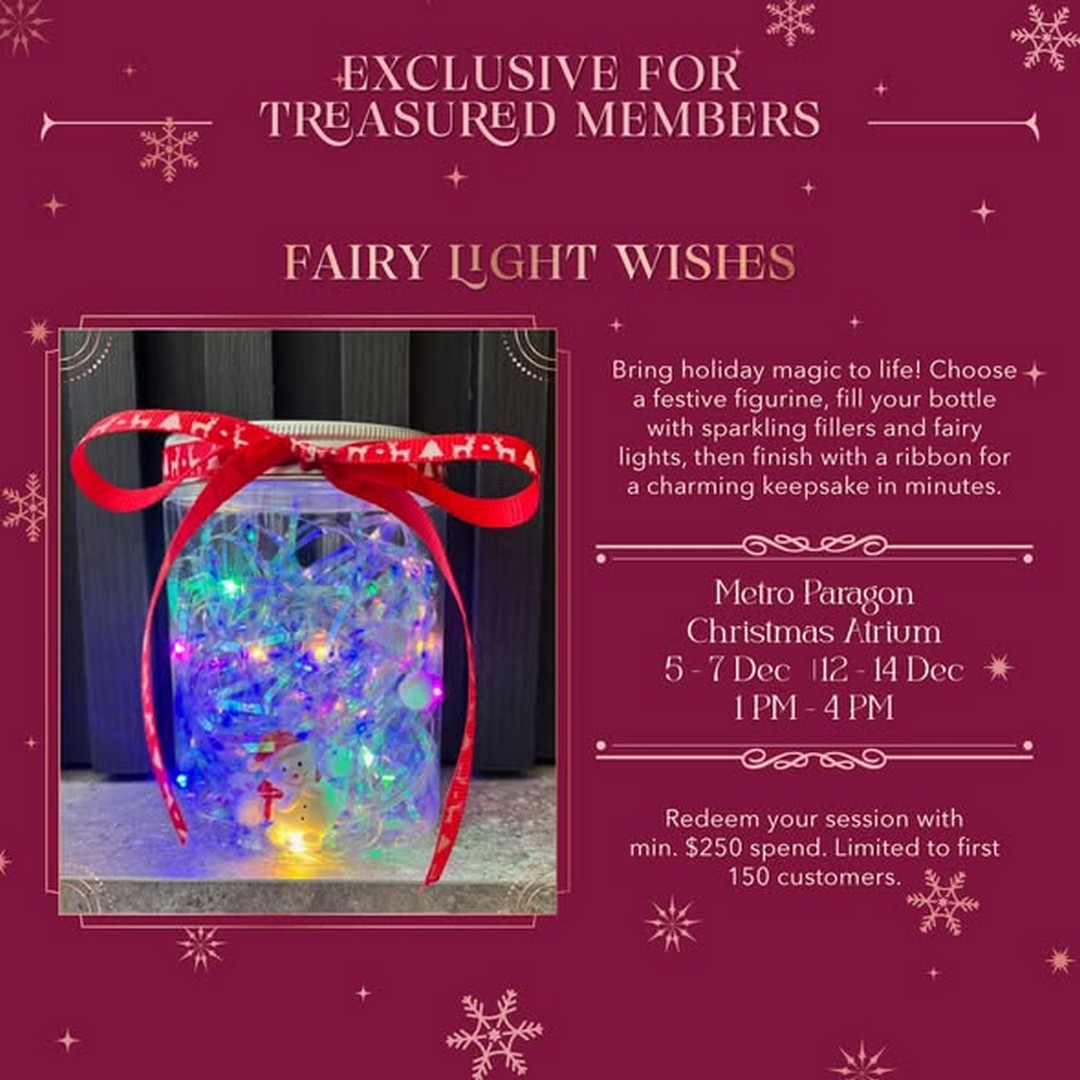 If DIY projects are more your style, then Metro Causeway Point has something special for you. Their DIY Christmas Charm Magic workshop, taking place on Level 2 during the same dates (5–7 December & 12–14 December) from 1 PM to 4 PM, allows Treasured Members to craft their own festive charms. Here, participants can redeem the workshop with a minimum spend of $100, making it a more accessible option for those who want to enjoy a creative holiday activity without committing to a higher purchase. Similar to the Paragon event, only the first 150 participants in each session can join, so early planning is key.
