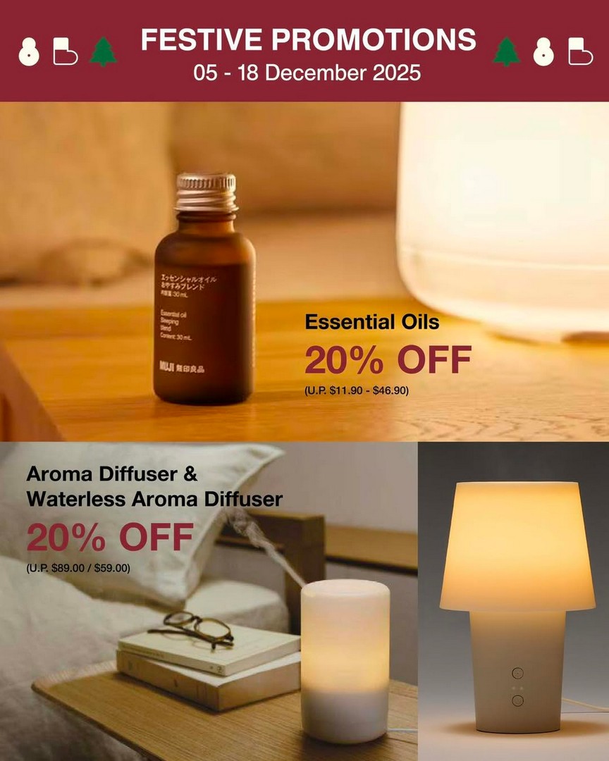 In summary, MUJI Singapore’s 20% OFF festive promotion on diffusers and essential oils is more than just a seasonal sale—it’s an invitation to invest in comfort, well-being, and holiday cheer. From the quality and elegance of MUJI’s products to the practical benefits of essential oils, this promotion provides an excellent opportunity to refresh your home, pamper yourself, or find thoughtful gifts for loved ones. By visiting the store between 5 and 18 December 2025, shoppers can enjoy substantial savings while experiencing the scents and products in person, discovering limited-edition festive items, and preparing for a more enjoyable holiday season.