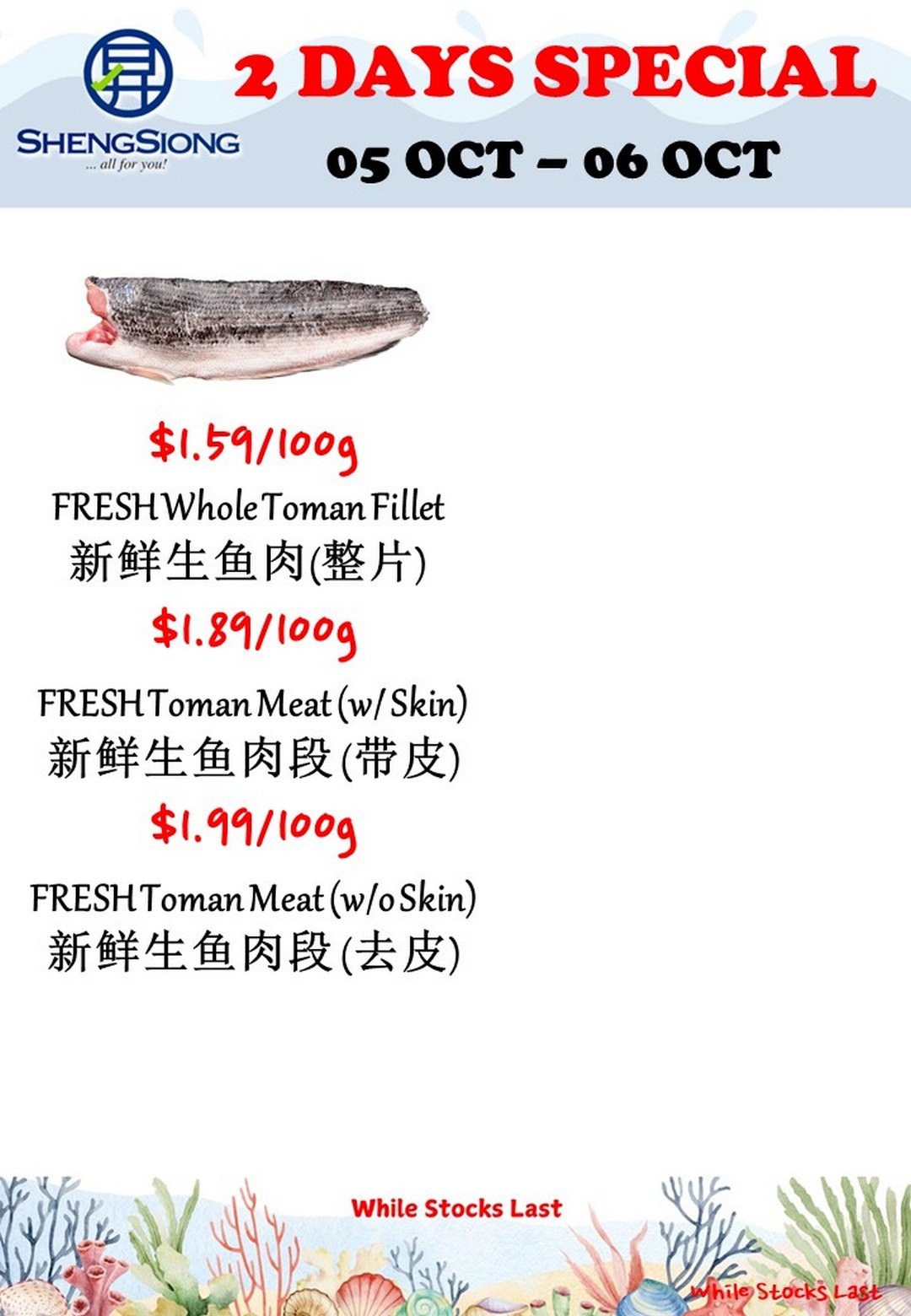 In conclusion, this 5-6 October 2025 seafood promotion at Sheng Siong Supermarket is more than just a sale—it’s an opportunity. It’s a chance to indulge in fresh, high-quality seafood at affordable prices, to experiment with new dishes, to enjoy a family-friendly shopping experience, and to incorporate more nutritious meals into their everyday routine. With limited stock and unbeatable freshness, shoppers are encouraged to visit early, plan their purchases wisely, and make the most of this two-day event. Those who love seafood or are simply curious to try something new will find this promotion irresistible, making it an essential addition to their weekend plans.