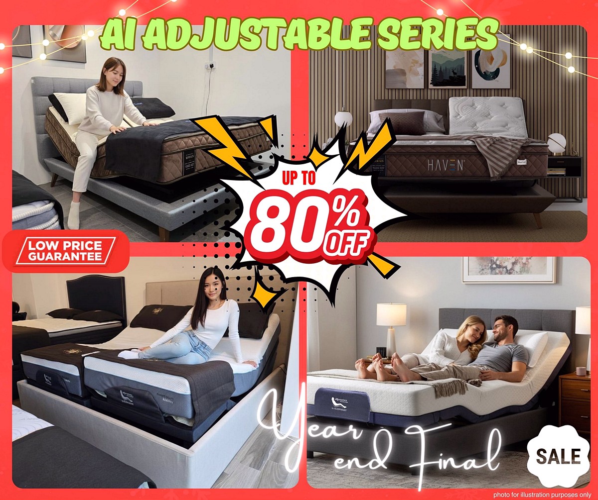 This segment is new and definitely worth highlighting because adjustable beds are usually seen in higher-end stores and come with steep pricing. Here, the discounted AI Adjustable Series is promoted as a premium sleep solution — suitable for: