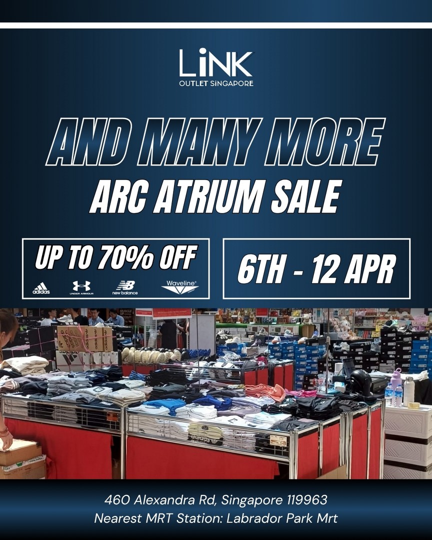 Singapore shoppers, get ready to mark your calendars because a shopping event you won’t want to miss is happening soon at the LINK Outlet Store! From 6th to 12th April 2026, the ARC Atrium will transform into a haven for bargain hunters, offering up to 70% off on big-name brands. If your wardrobe or sneaker collection has been waiting for a refresh, this is the perfect opportunity to grab premium items without burning a hole in your wallet.