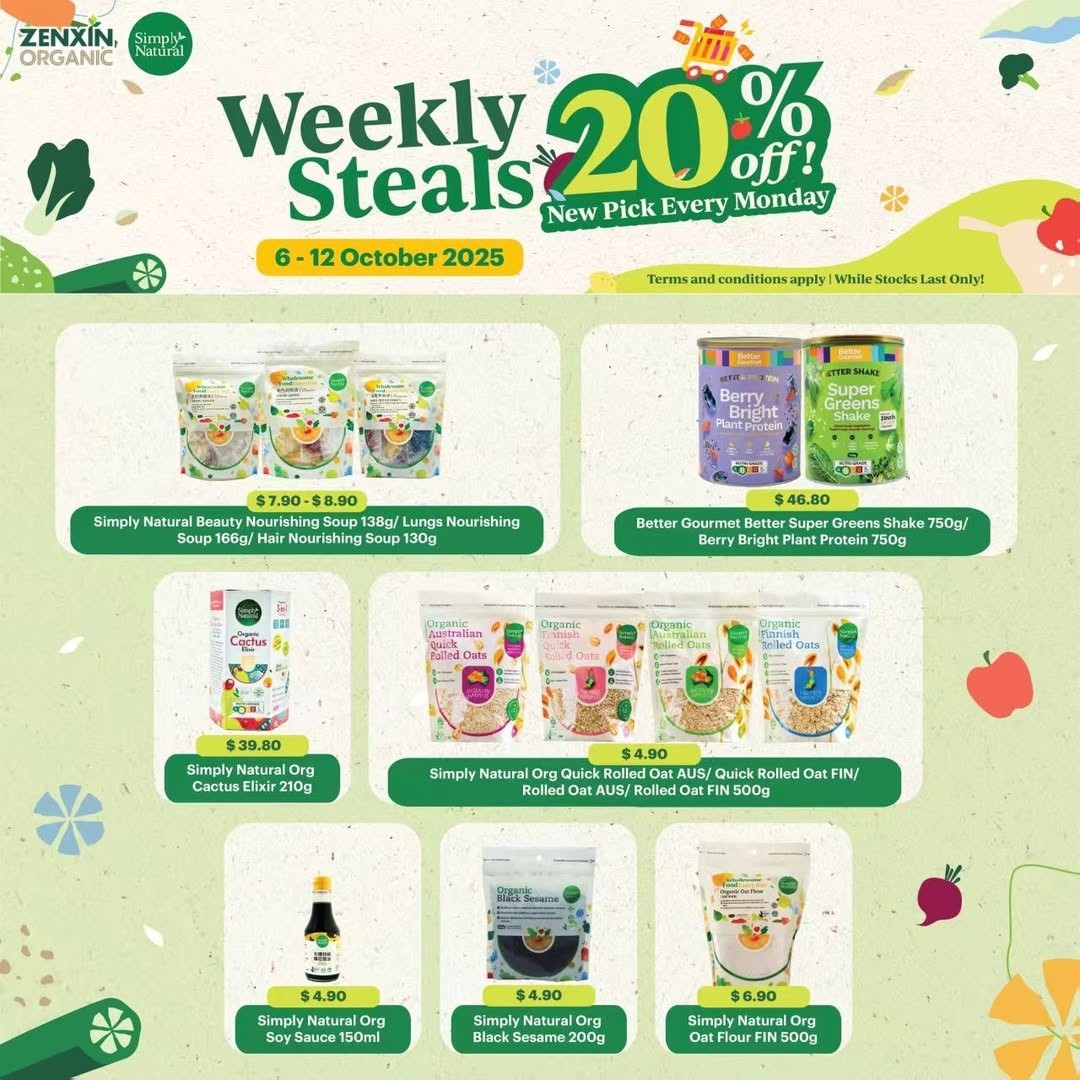 If they are looking for a way to fill their kitchen with fresh, wholesome, and organic food without breaking the bank, Zenxin Organic Food Singapore has something truly exciting lined up. From 6 to 12 October 2025, Zenxin is offering their Organic Weekly Steals at 20% OFF, giving health-conscious shoppers the perfect opportunity to stock up on quality organic products at unbeatable prices.