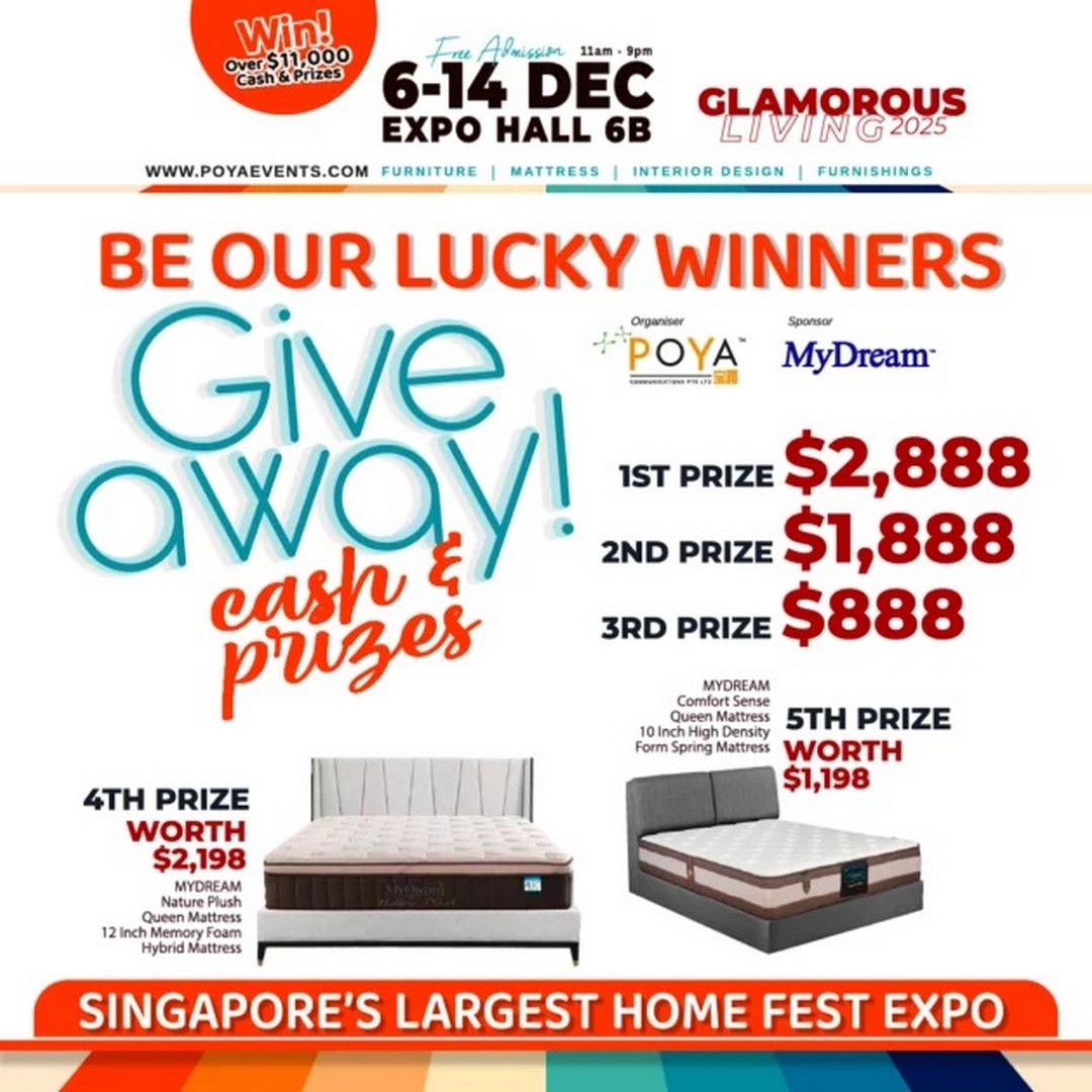 Visitors love attending Glamorous Living not only for the shopping experience but also for the exciting giveaway. This year, the event is offering more than $11,000 worth of cash and prizes through its lucky draw.
