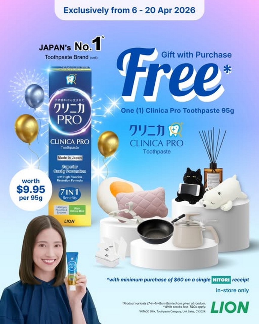 If there is one thing savvy shoppers in Singapore appreciate, it is a deal that quietly adds extra value to something they were already planning to buy. That is exactly what is happening right now with Nitori Singapore’s latest in-store promotion. Running for a limited period from 6 to 20 April 2026, this simple yet rewarding giveaway offers shoppers a complimentary Clinica Pro Toothpaste (95g), worth $9.95, when they spend a minimum of $60 in a single receipt.