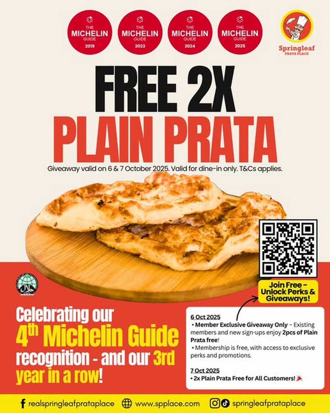 Whether someone is a die-hard prata fan, a casual diner, or someone simply looking to enjoy a complimentary treat, this Springleaf Prata Place event is not to be missed. Two days of free pratas, Michelin recognition, and the chance to sign up for membership perks create a perfect opportunity to indulge in quality, flavour, and a touch of culinary prestige.
