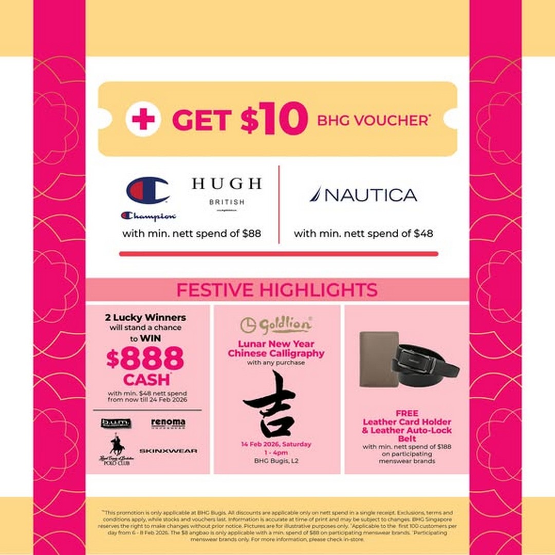If there’s ever a perfect weekend for a little retail therapy, this coming weekend at BHG Singapore is it. For a limited three days from 6th to 8th February 2026, BHG Bugis is making it irresistible for shoppers to upgrade their wardrobe while enjoying a little festive cheer. Their latest campaign, “Ang Bao + New Fits = Double Happiness,” combines the thrill of a lucky Ang Bao giveaway with the appeal of fresh fashion and discounts, making it an event that fashion-conscious men simply cannot afford to miss.