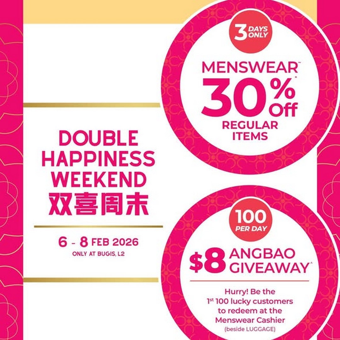Shoppers don’t need to worry about missing out either. Even though the Ang Bao giveaway is limited to the first 100 customers each day, the 30% off menswear promotion applies to all purchases, which means everyone visiting during the weekend will walk away with some savings. This combination makes it ideal for both the early risers looking for a bit of festive luck and for those who are content to browse and shop at their own pace.