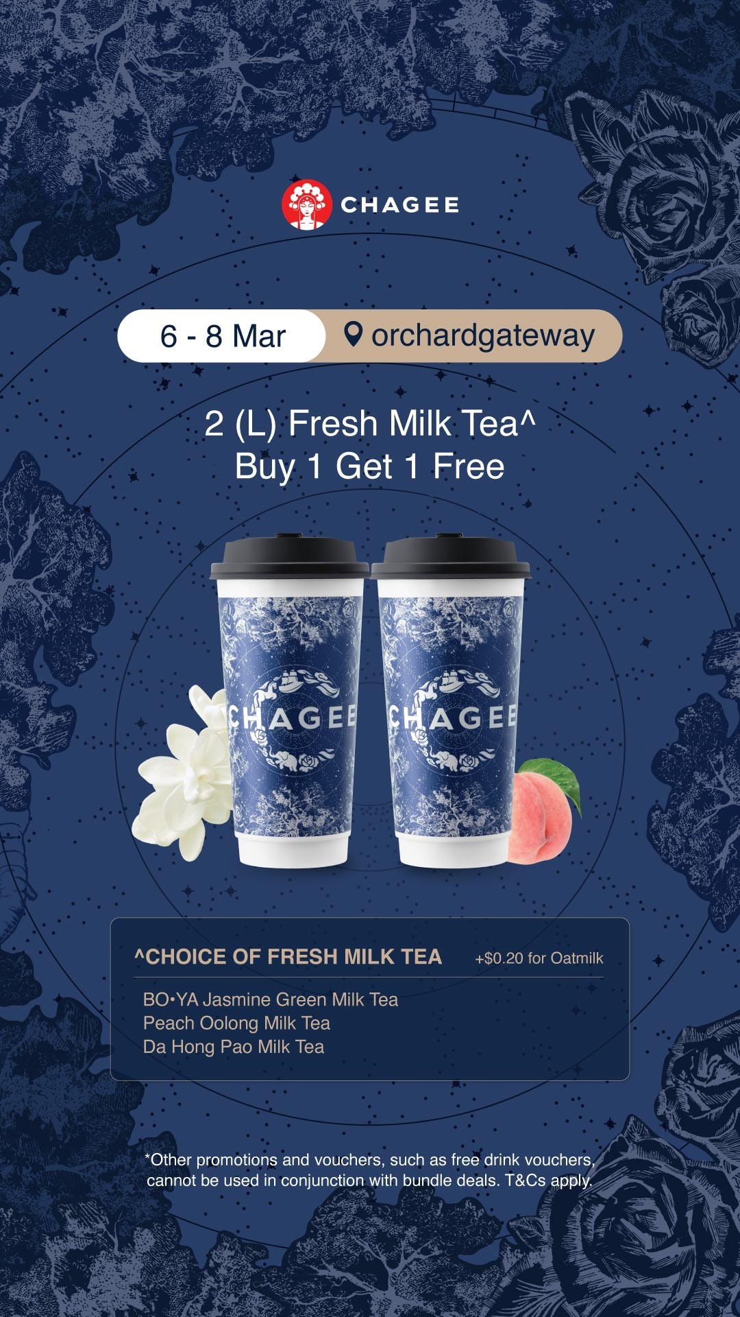 From 6 to 8 March 2026, CHAGEE is running a Buy 1 Get 1 Free promotion on Large Fresh Milk Tea at their orchardgateway outlet. In simple terms, customers can enjoy two large cups of freshly brewed milk tea for the price of one. For anyone who regularly buys bubble tea or milk tea in town, they will know that this kind of deal is relatively rare — especially from a brand that focuses strongly on premium tea leaves and authentic brewing techniques.