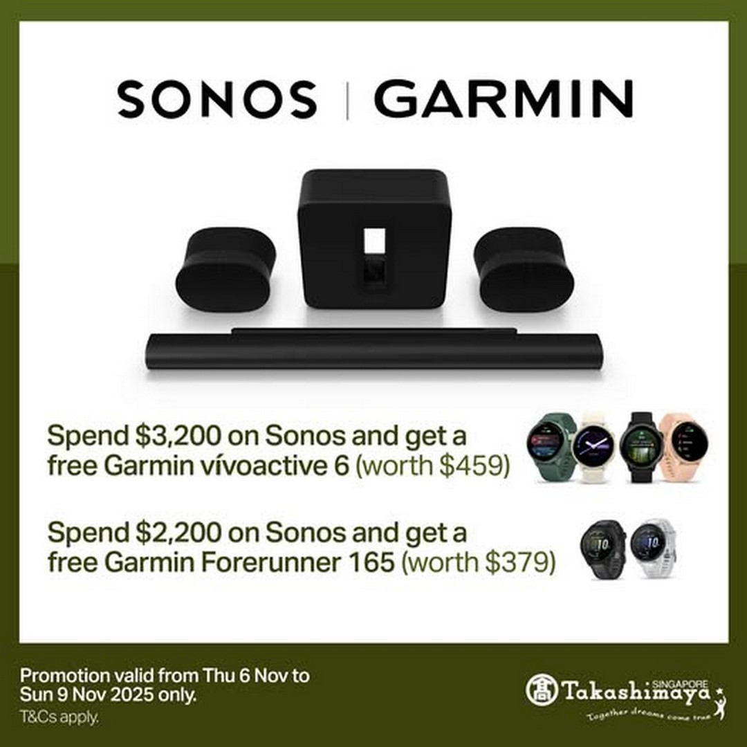 So, if you’re ready to enhance your living space with brilliant sound and receive an exceptional gift in return, make your way to Takashimaya Department Store between 6 and 9 November 2025. The combination of Sonos’ superior audio technology and Garmin’s advanced fitness wearables makes this promotion too good to ignore.