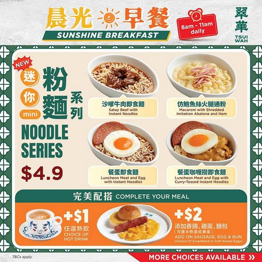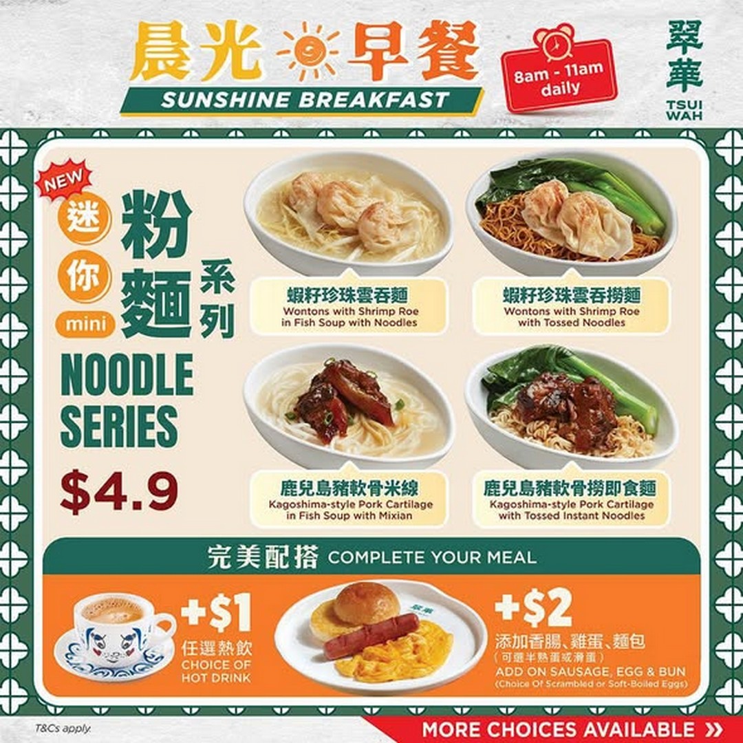 Starting from 6 April 2026 onward, Tsui Wah Singapore has introduced a brand-new breakfast menu that begins at just $4.90. For those familiar with the brand, this is quite an exciting development, especially considering their reputation for hearty Hong Kong-style comfort food. What makes this promotion particularly interesting is the introduction of their Mini Noodle Series – a concept that feels thoughtfully designed for modern diners who may not always want a large portion first thing in the morning.