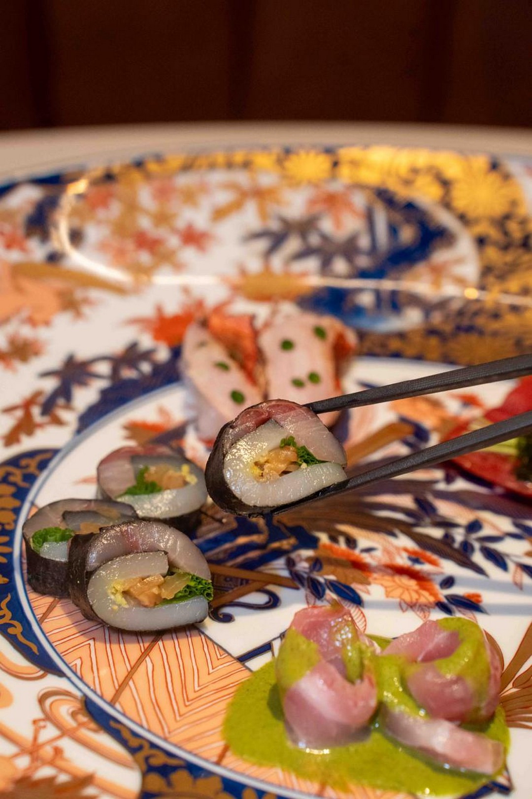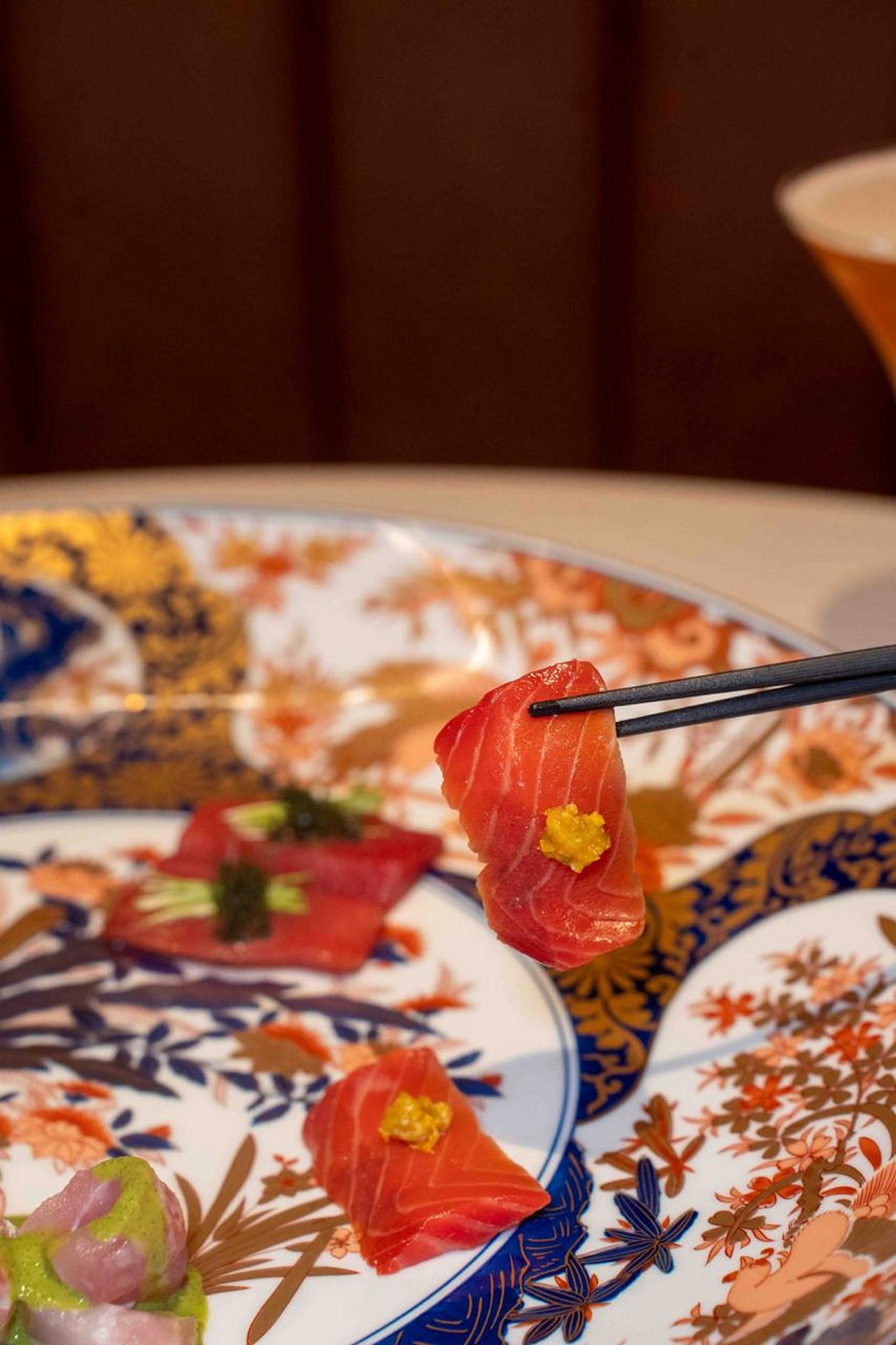 For those who enjoy variety or simply want to treat themselves to something indulgent, the menu offers plenty more to explore. The Sashimi Moriawase (from $38) is designed for diners who appreciate freshness above all else. You may choose either three or five types, and the selection depends on seasonal availability, ensuring the seafood arrives at its prime. One of the most interesting features of the sashimi platter is its nigiri-style pieces made without rice. Instead of using traditional sushi rice, pieces such as the Kinmedai nigiri are crafted on diced squid, which amplifies the natural sweetness and texture of the fish.