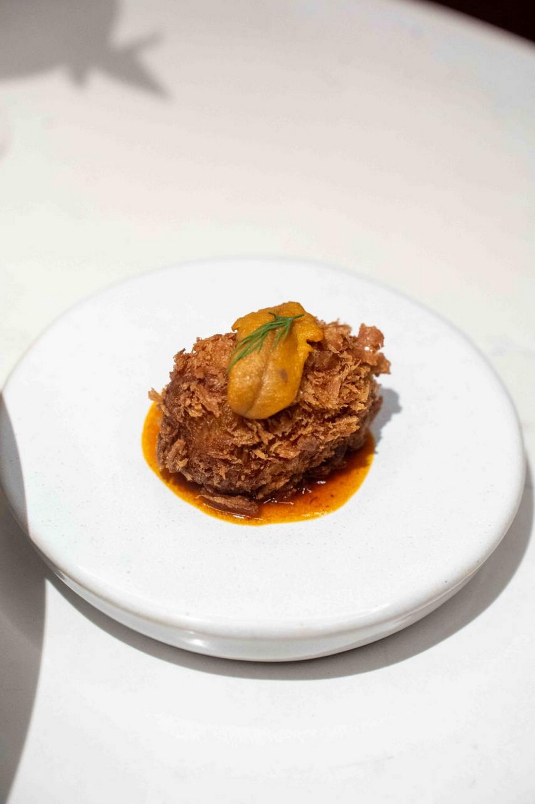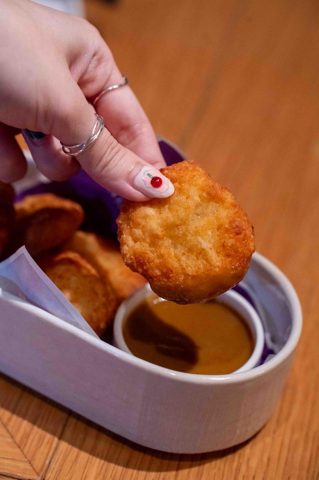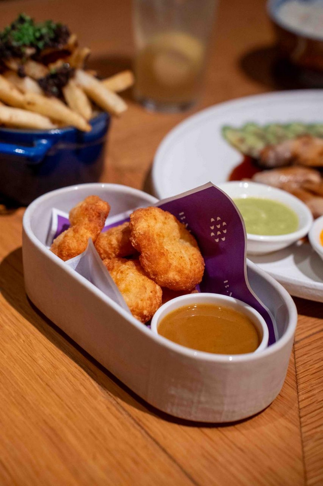 If bar bites and sharing plates are more your style, BARREL has designed its menu with that in mind too. The Uni-Corn Croquette, priced at $24 for two pieces, is one of those dishes made for slow evenings accompanied by good drinks. Deep-fried creamed corn enriched with uni butter and topped with fresh uni, it brings together sweetness, umami, and richness in a way that feels almost indulgent. Another playful creation on the menu is the Mochi Cheese Nugget at $15 for five pieces. Fans of familiar fast-food snacks may find it amusing that the dish pays homage to the famous chicken nugget, curry sauce included, though BARREL’s version swaps out chicken for chewy mochi and wraps everything in a nostalgic, comforting flavour profile.