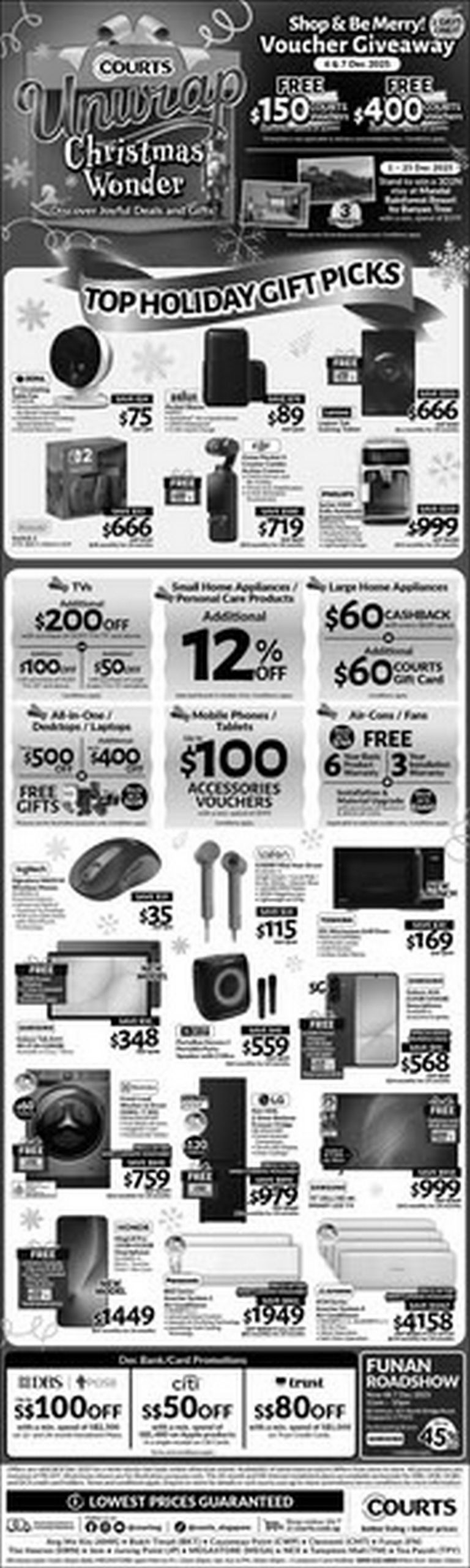 Moreover, the festive atmosphere at COURTS enhances the overall experience. Stores are beautifully decorated, creating a warm and inviting environment that reflects the holiday spirit. This is more than just a shopping trip; it’s an opportunity to soak in the seasonal excitement, discover new products, and plan memorable celebrations at home. Shoppers can take their time exploring the various departments, test out gadgets, and get inspiration for setting up their homes for festive dinners, parties, or cosy nights in. The combination of practical shopping with a touch of holiday magic is exactly what makes this promotion stand out.