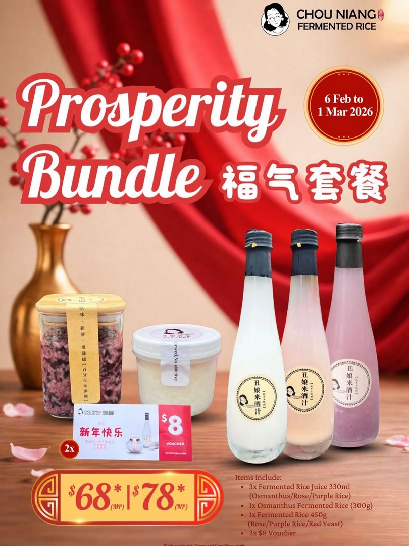 Known for their artisanal fermented rice creations, Chou Niang Jiu Niang has built a loyal following among those who appreciate traditional flavours presented in a modern, approachable way. Their products often evoke memories of home-style comfort while still fitting neatly into contemporary lifestyles. For this festive period, they have curated a Prosperity Bundle designed specifically for sharing, gifting, and celebrating togetherness.