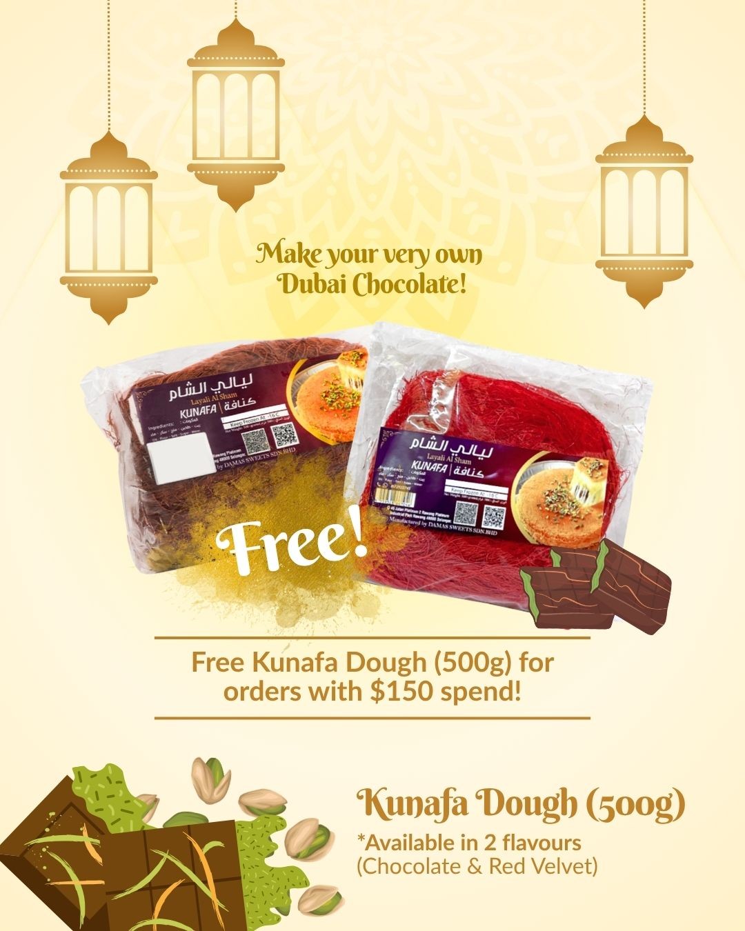 Whether they are seasoned bakers or just starting their culinary journey, this promotion offers an engaging and practical way to enjoy Middle Eastern flavours at home. It’s a chance to step out of the ordinary, add a luxurious dessert to their repertoire, and indulge in a hands-on baking experience that is as enjoyable as it is delicious. Don’t miss the opportunity to grab this free kunafa dough while stocks last – their next baking adventure awaits.