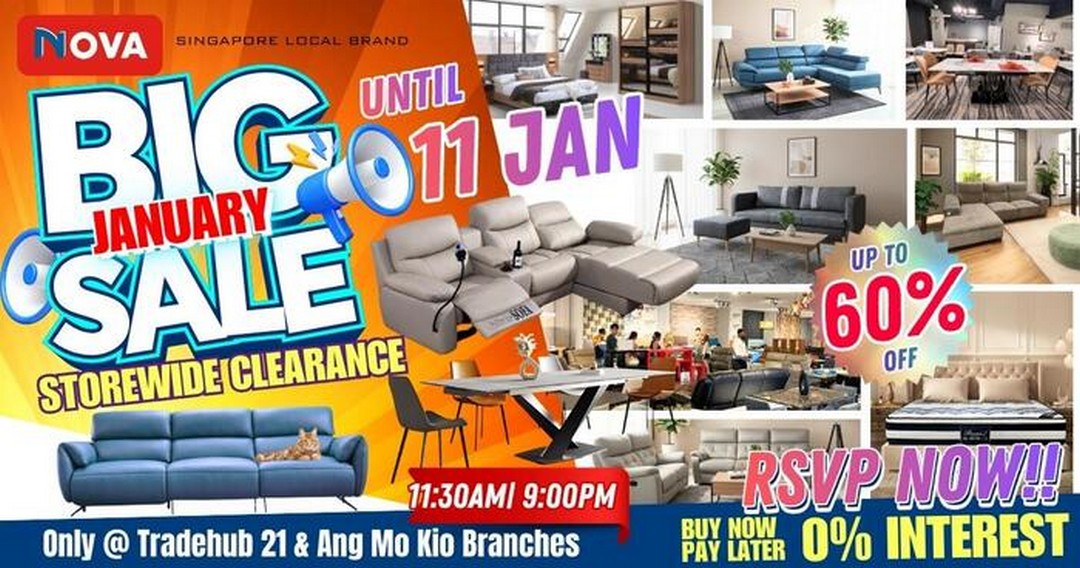 Starting the year with a home refresh is always a great idea, and for those planning to upgrade their interiors without overspending, NOVA’s Biggest Furniture Clearance of the First Month of the Year is the perfect opportunity. Happening at both Tradehub 21 and Ang Mo Kio, this sale brings incredible savings of up to 60% off a wide range of furniture, combined with 0% interest instalment plans for those who prefer to spread their payments. With the New Year just around the corner, it’s a timely chance for homeowners to furnish or reinvent their spaces while keeping costs down.