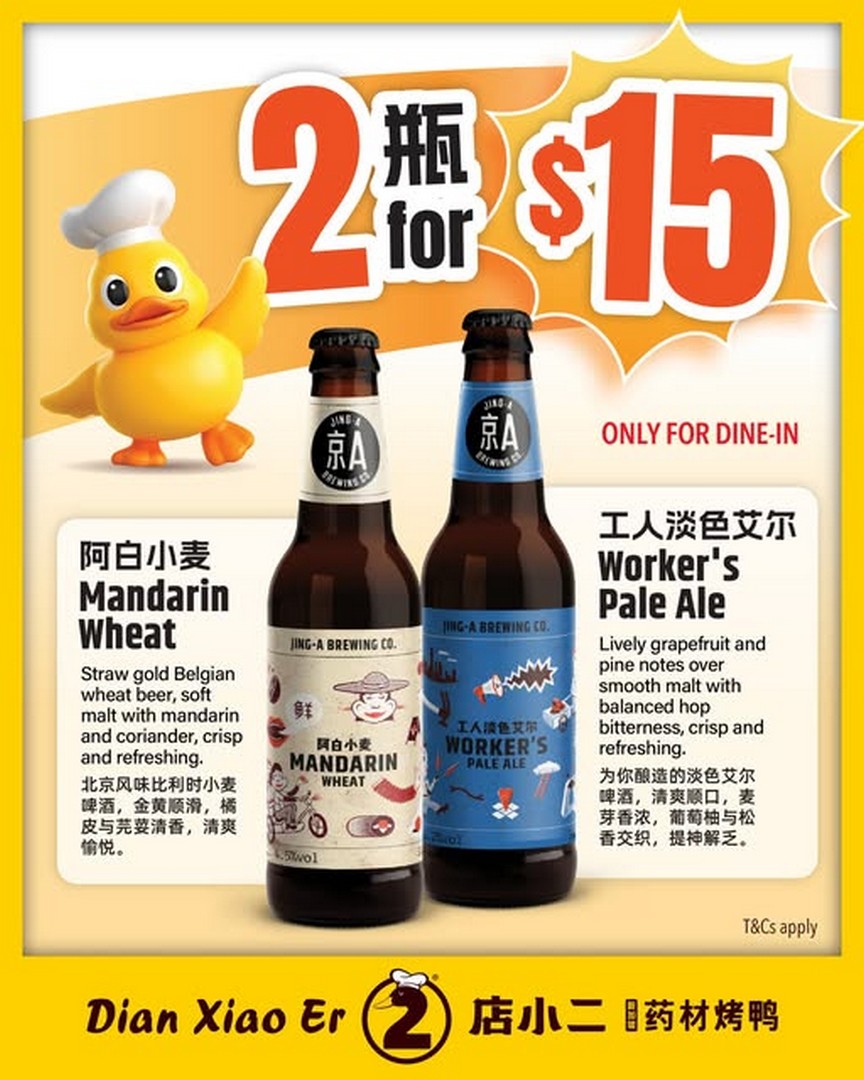 Now, they are giving diners another reason to drop by. Starting from 7 April 2026 onward, Dian Xiao Er is offering an attractive promotion that is hard to ignore – 2 bottles of Jing-A craft beer for just $15. For anyone who appreciates a refreshing drink to go along with a satisfying meal, this is one of those deals that feels just right, especially in Singapore’s warm climate.