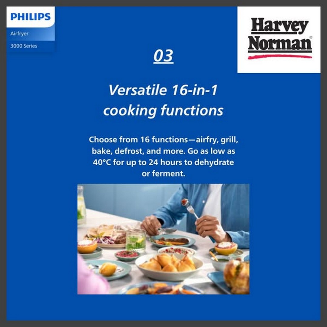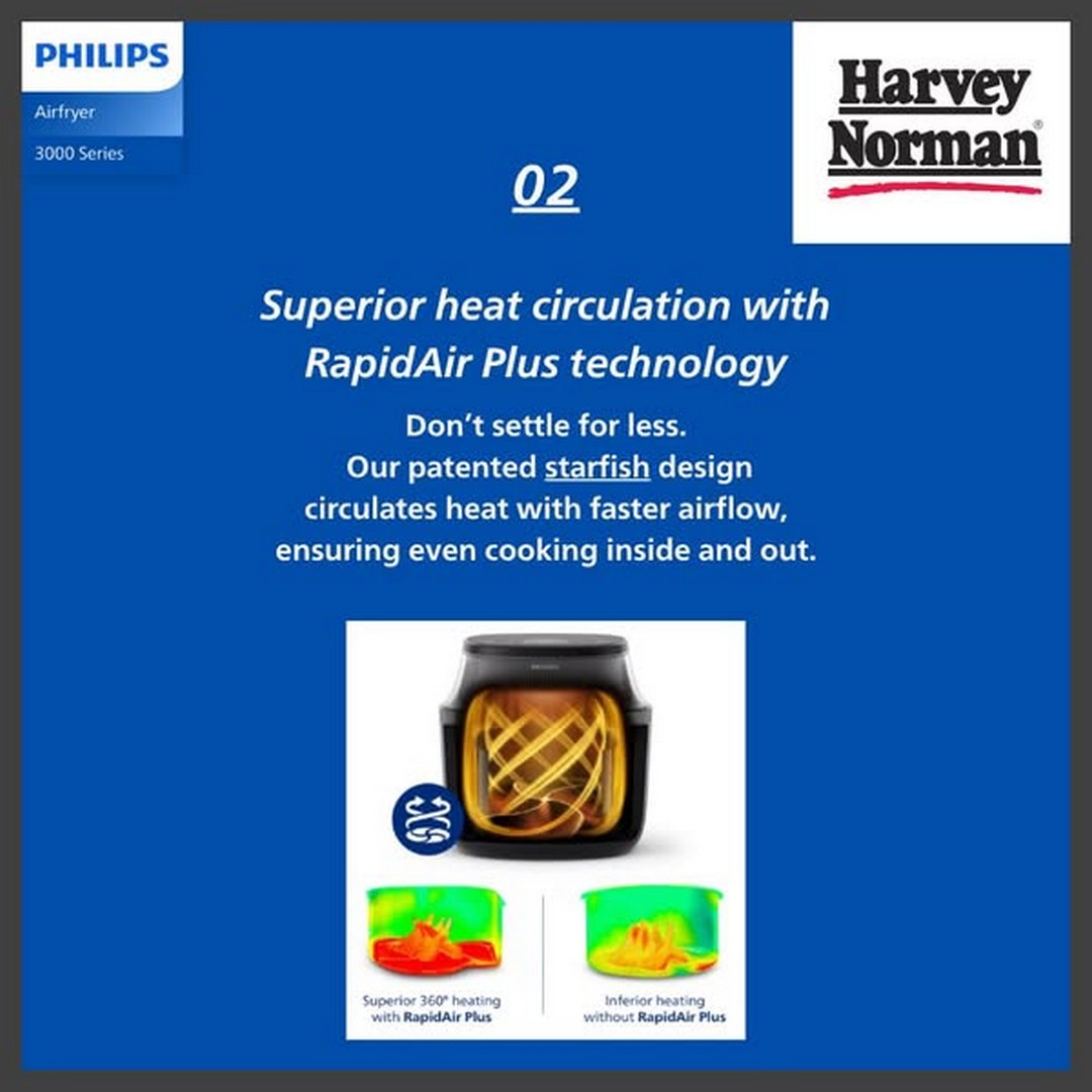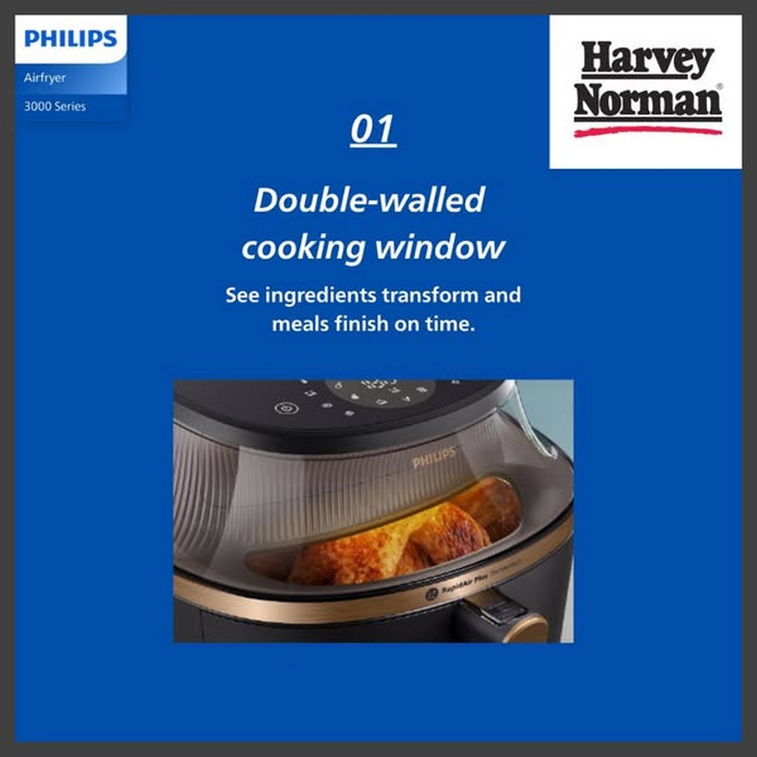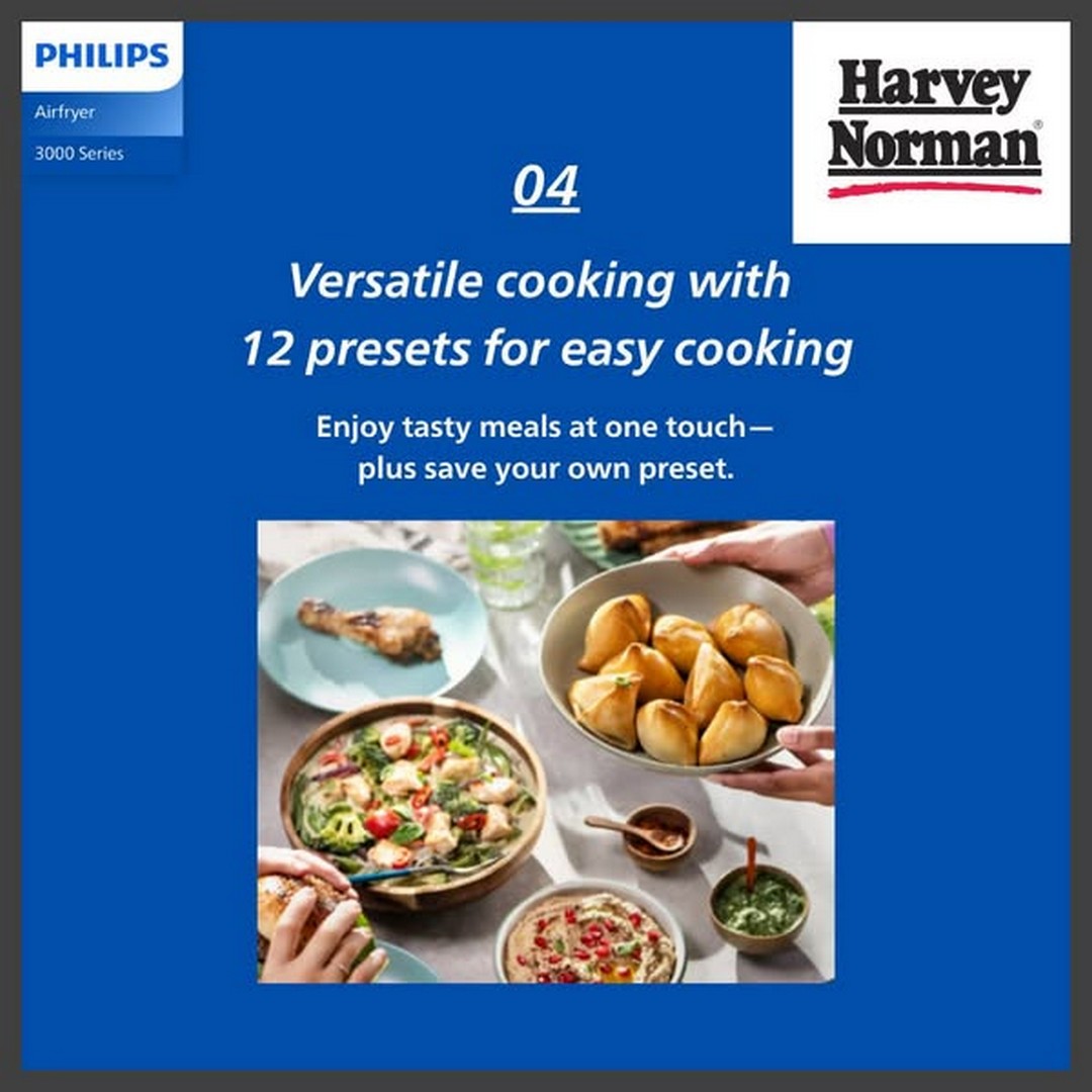 The promotion at Harvey Norman makes this deal even sweeter. Alongside the discounted price, the free steam and stir-fry accessories expand the range of dishes users can create. The steam accessory is perfect for preparing delicate vegetables or fish, while the stir-fry tool allows for quick, even cooking of meat and vegetables with minimal fuss. Together, these accessories effectively turn the airfryer into a multi-functional cooking station that saves time, energy, and effort in the kitchen.