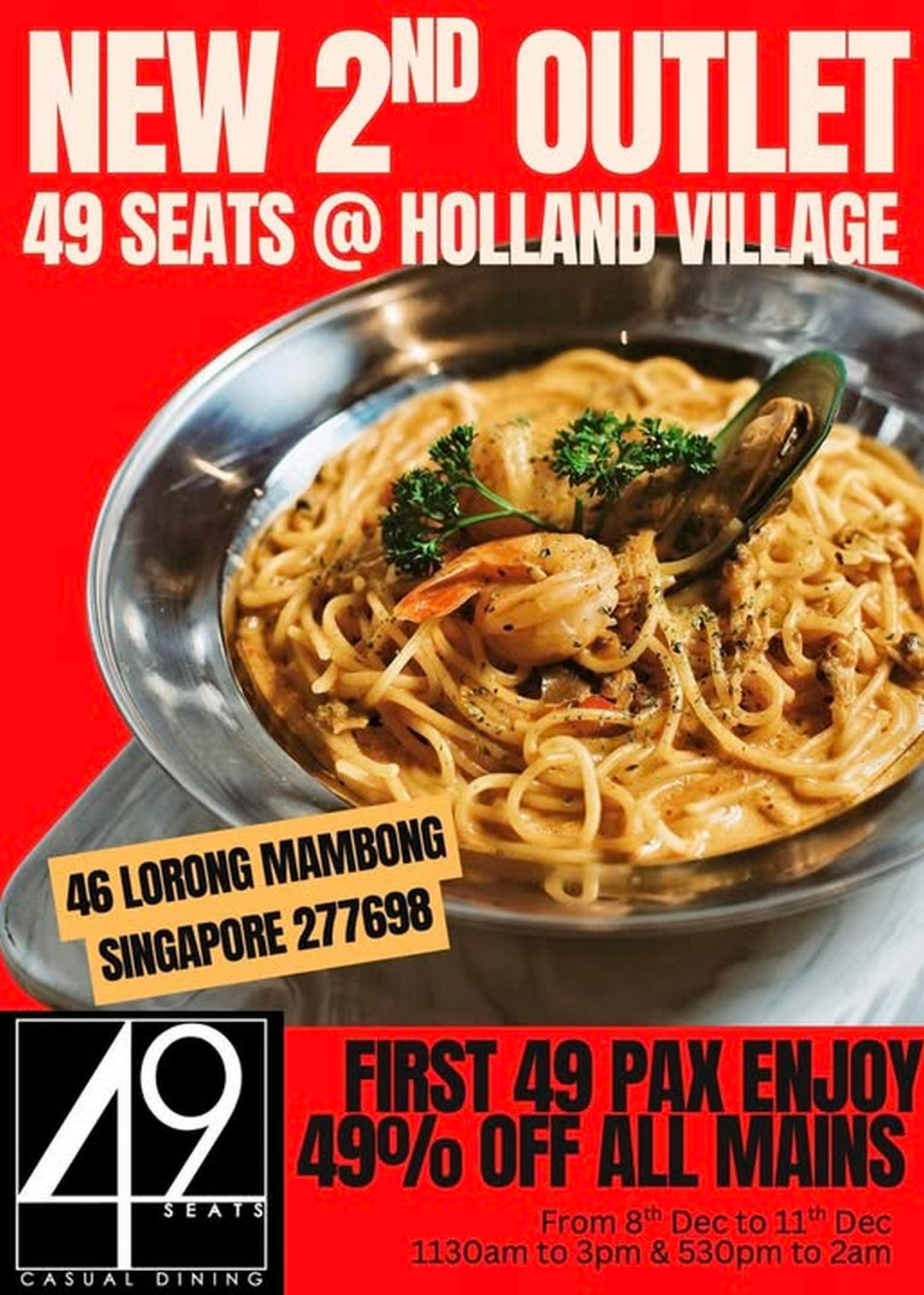Singapore food lovers, get ready for an irresistible treat! 49 Seats is celebrating the grand opening of their second outlet at the vibrant Holland Village, and they are making sure the occasion is one to remember. To mark this milestone, they are offering an amazing 49% off all mains for the first 49 orders – yes, you read that correctly, nearly half price! This offer runs from 8th to 11th December 2025, and it’s a golden opportunity for anyone who enjoys a hearty meal at an unbeatable price.