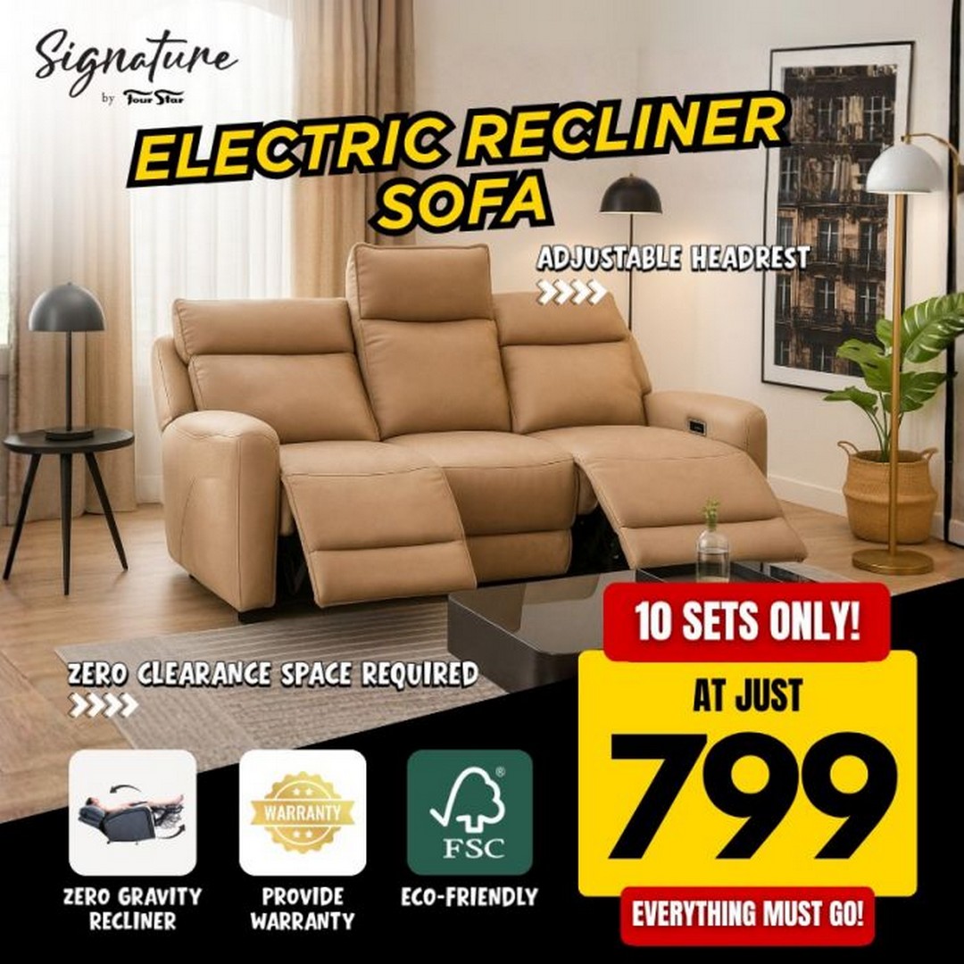 If your living room could use a revamp, the range of electric recliner sofas and easy-maintenance 3-seater sofas is worth checking out. The electric recliner sofa, complete with adjustable headrest, is available for just $799 — but act fast, as only 10 sets are available at this price. Meanwhile, 3-seater sofas start from $499, a price point that’s rarely seen for well-crafted designs.
