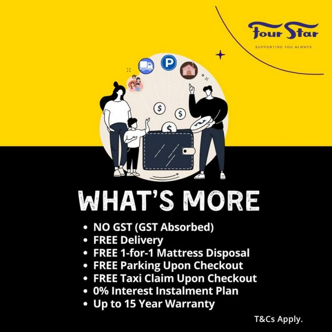 Trusted Brand: Four Star is a well-known Singaporean brand with over five decades of expertise in comfort and craftsmanship.