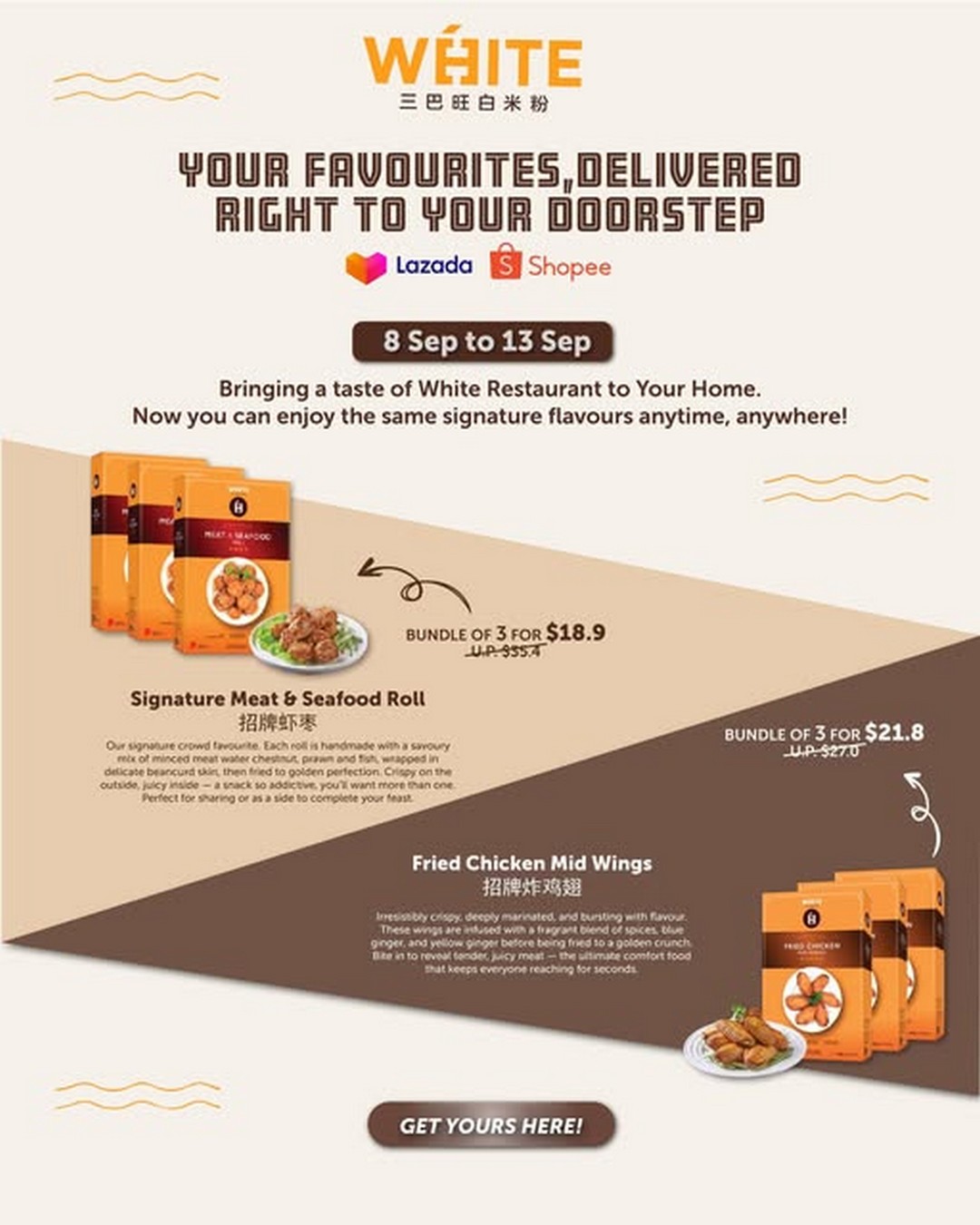 The convenience of this promotion also lies in how customers can make their purchases. White Restaurant has made the deal available both at their outlets and through online platforms such as Shopee and Lazada. This makes it accessible for everyone, regardless of whether they prefer shopping in person or online.