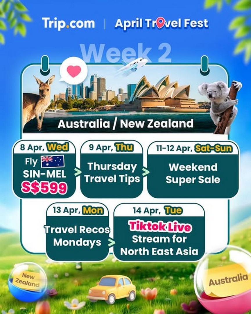Travel lovers, it’s time to mark your calendars because Trip.com is back with their exciting April Travel Fest, dedicated to all things Oceania. From 8 to 14 April 2026, travellers in Singapore have the perfect opportunity to snap up unbeatable deals to Australia and New Zealand, all while discovering helpful travel tips and inspiration for their next getaway. Whether you’re a seasoned globetrotter or planning your first overseas adventure, Trip.com has crafted a week-long schedule packed with exclusive offers, flash sales, and interactive events that make planning a trip fun, easy, and wallet-friendly.