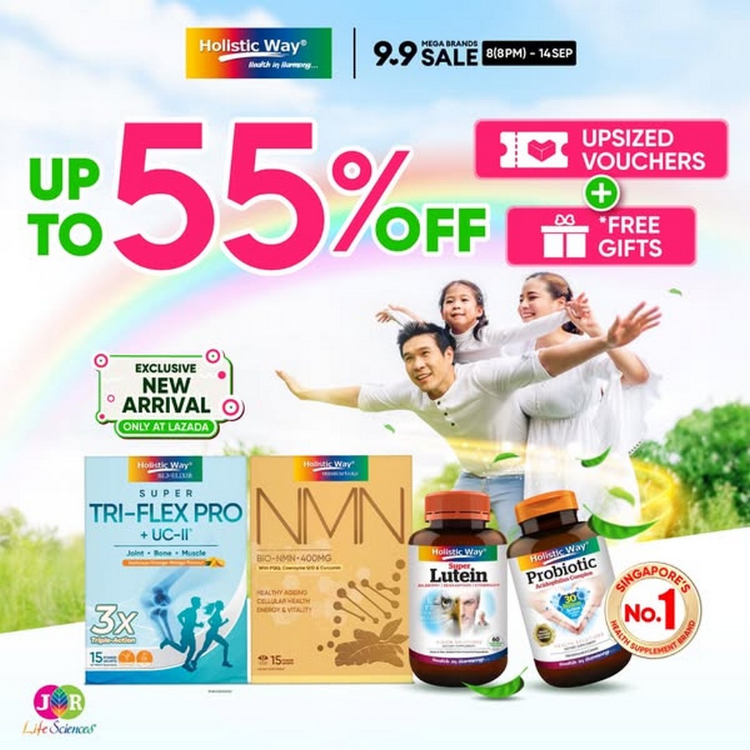 Holistic Way has earned a reputation in Singapore for its high-quality health supplements, vitamins, and beauty enhancers. Their products cover everything from boosting immunity, supporting joint health, and enhancing vitality, to ensuring skin glows from within. During the 9.9 Mega Brands Sale, customers can enjoy up to 55% off on a wide selection of products. That alone makes it a deal worth exploring, but there’s so much more to get excited about.