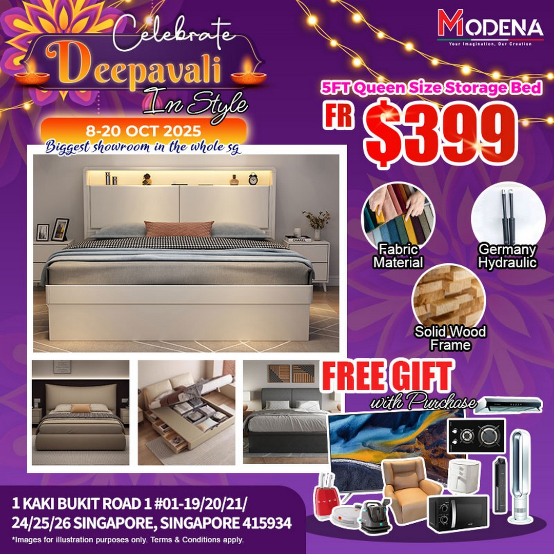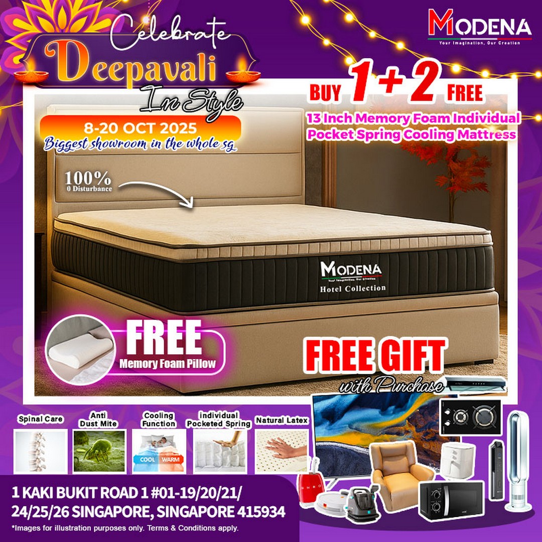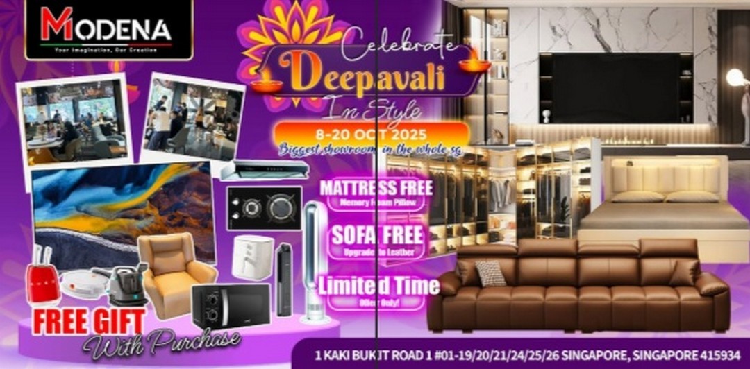 Deepavali is one of the most vibrant and joyous celebrations in Singapore, marking the triumph of light over darkness and bringing families together in warmth and colour. This year, Modena Furnishing is inviting shoppers to celebrate the Festival of Lights in style, offering a range of festive deals and home transformations that are simply too good to miss. From 8 to 20 October 2025, their Deepavali Furniture Sale promises everything a home could need to shine bright during this special season.