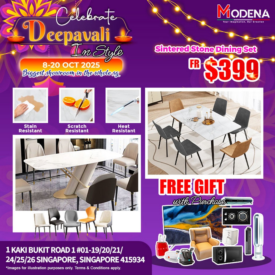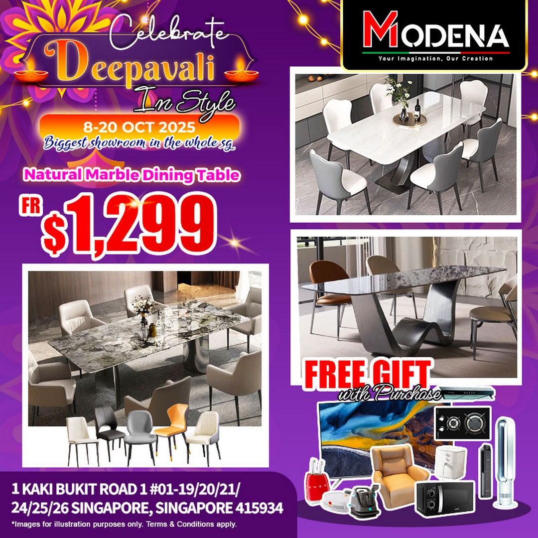 In summary, Modena Furnishing’s Deepavali Furniture Sale is more than just a promotion—it’s an invitation to transform homes and celebrate the season in style. With a wide variety of furniture, exclusive festive deals, sure-win gifts, and an immersive shopping experience, there’s every reason for Singaporeans to visit between 8 and 20 October 2025. Whether preparing for family gatherings, hosting friends, or simply refreshing their living space, shoppers will find this sale both rewarding and inspiring. By combining practical benefits with the festive spirit, this is an opportunity not to be missed for anyone wanting to elevate their home and celebrate Deepavali in style.