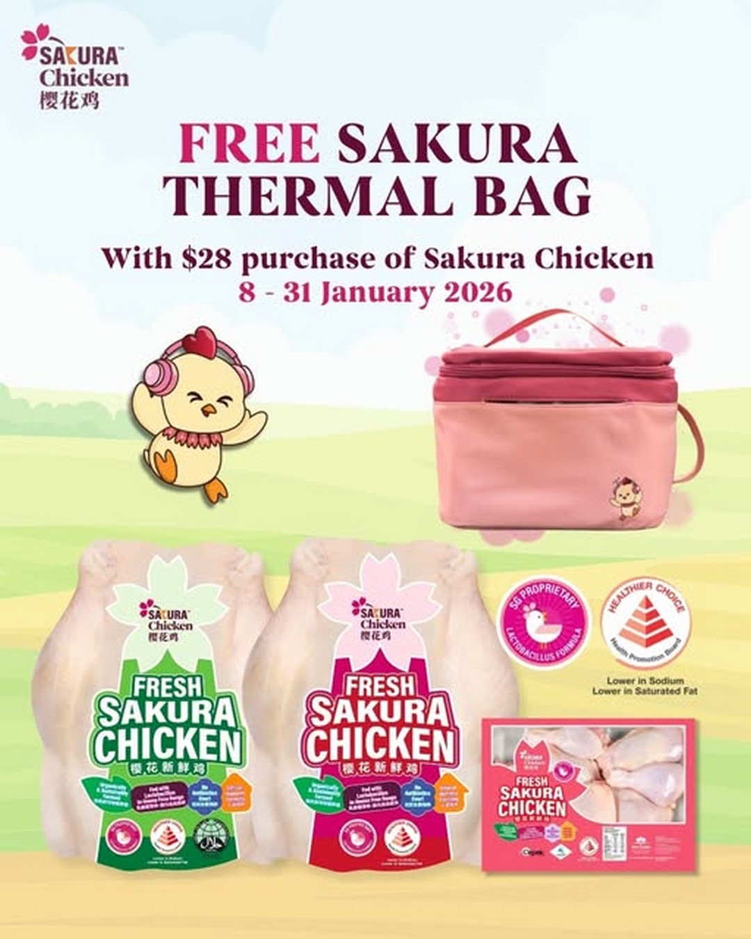One of the most appealing aspects of this offer is that it’s perfect for keeping your fresh Sakura Chicken picks cool while you continue with your errands. Thermal bags aren’t just a seasonal accessory—they’re genuinely practical, especially in Singapore’s warm climate. Imagine being able to carry your fresh groceries home without worrying about temperature-sensitive items losing their freshness. This Sakura-themed bag is not only functional but also adds a charming seasonal touch to your everyday shopping.