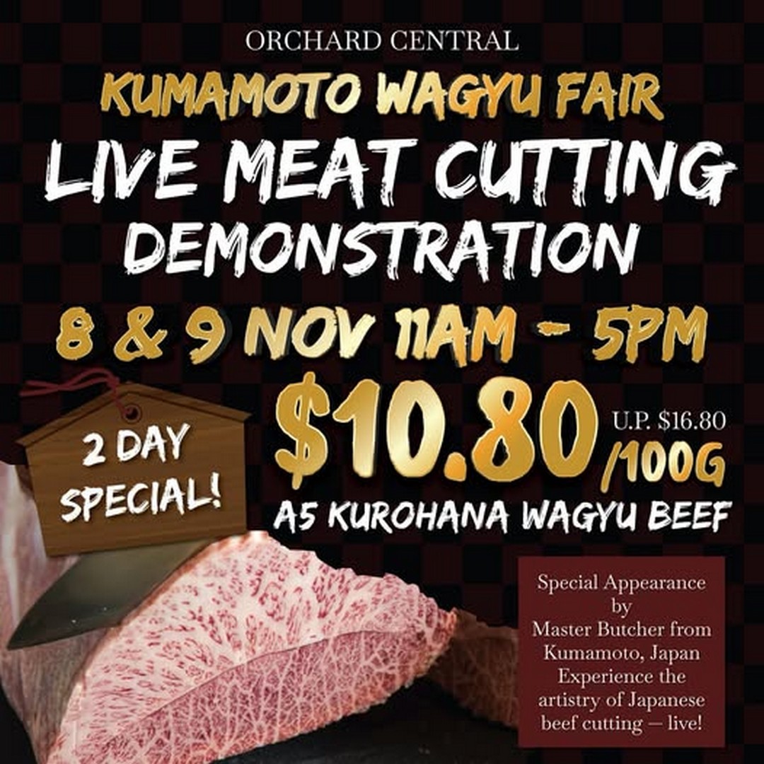 Orchard Central itself makes for the perfect venue. Located right in the centre of Singapore’s shopping district, it’s easily accessible and surrounded by plenty of dining and entertainment options. You can make a full day out of it — stop by for the Kumamoto Wagyu Fair, witness the live demonstration, buy some premium beef to take home, and then enjoy a stroll around Orchard Road’s bustling shops and cafés.