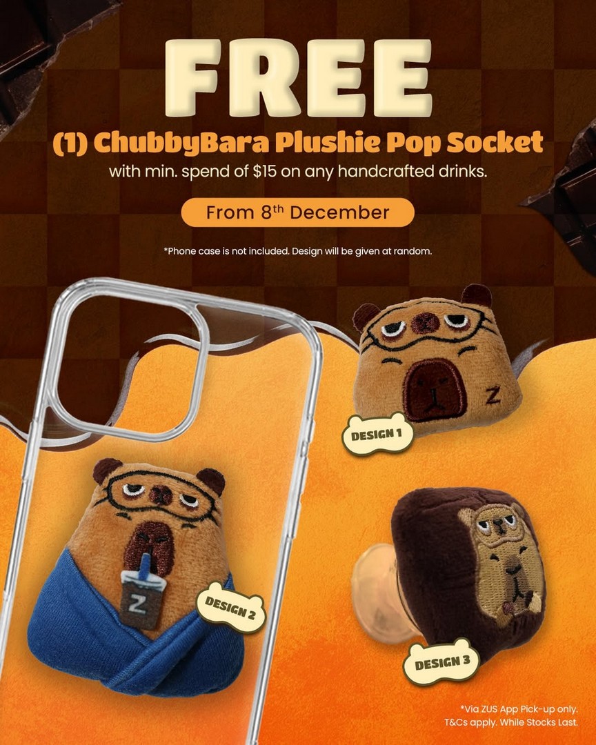 Looking for a little extra joy to brighten up your day while sipping on your favourite handcrafted drinks? ZUS Coffee has a fun and quirky way to bring a smile to both you and your phone with their latest promotion: a FREE ChubbyBara Plushie Pop Socket with every qualifying purchase. If you love your drinks to come with a little twist of fun and charm, this is one promotion that is definitely worth checking out.