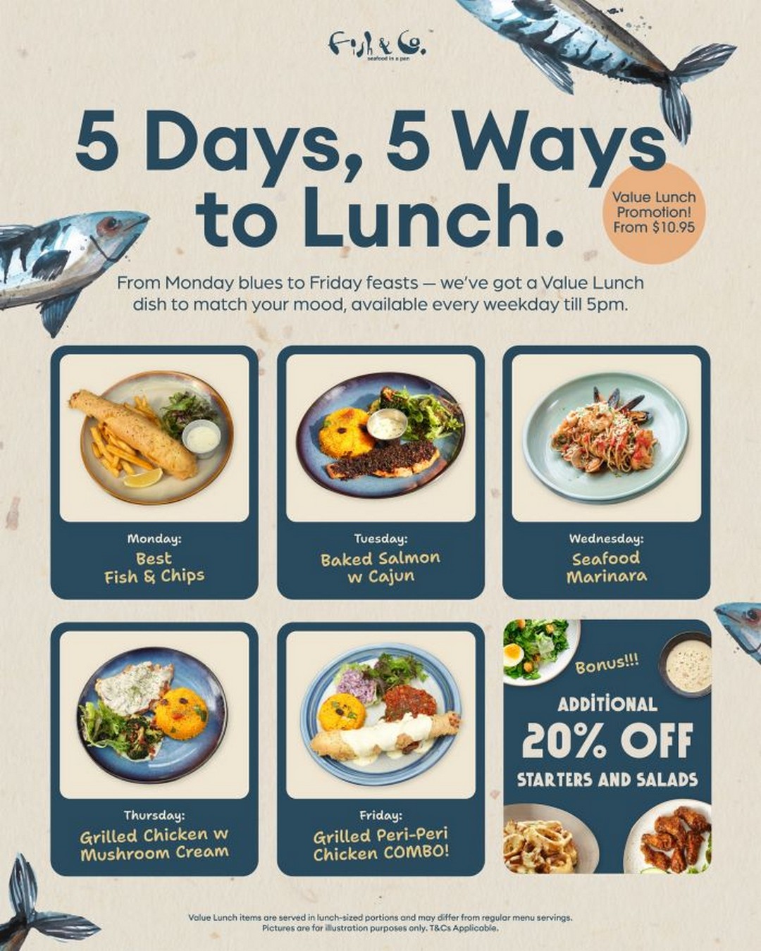 Fish & Co is known for its fresh seafood and classic dishes that cater to both traditional and modern palates. Their Value Lunch Menu gives diners the chance to enjoy this signature quality at an even more approachable price. Whether you’re craving a hearty fish and chips, a zesty seafood pasta, or a wholesome salad with a seafood twist, there’s something for everyone. The best part? You don’t have to wait for the weekend to indulge—this promotion ensures that your weekday lunches can be just as exciting and flavourful.