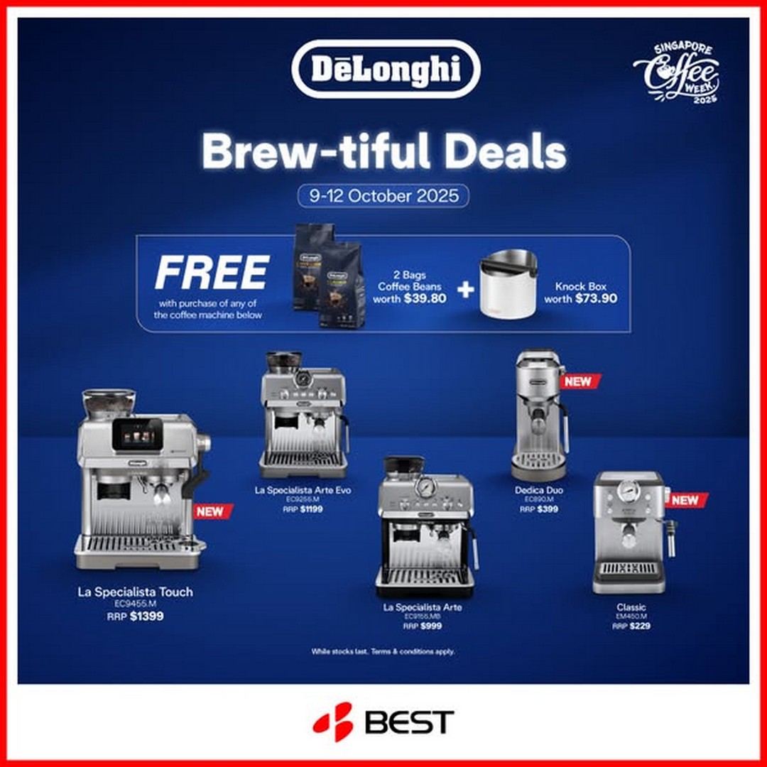 In short, if they are looking to enhance their home coffee setup, save money on premium beans, and enjoy a fun and educational outing, the De’Longhi Brew-tiful Deals at BEST Denki Singapore during Singapore Coffee Week is an opportunity they shouldn’t miss. From free coffee beans and knock boxes to 25% off all coffee beans, the promotion offers tangible value while celebrating the love for coffee in a vibrant, hands-on environment. Mark their calendars and head over to Plaza Singapura from 9–12 October 2025 to make the most of this limited-time promotion.