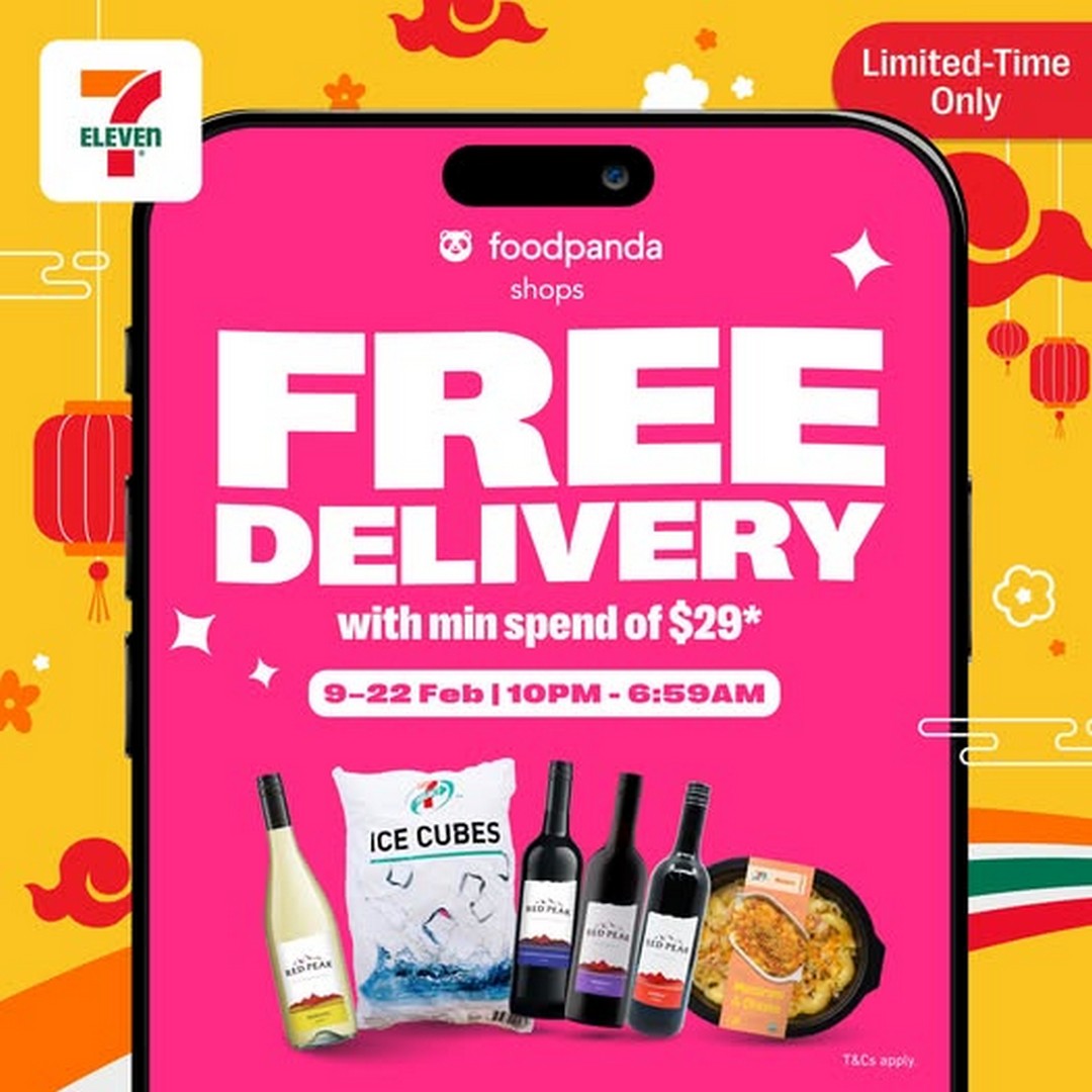 From 9–22 February 2026, 7-Eleven is offering a free delivery promotion on Foodpanda for orders with a minimum spend of $29. This offer is valid during the late-night hours of 10:00 pm to 6:59 am, the perfect window for those unexpected hunger pangs.