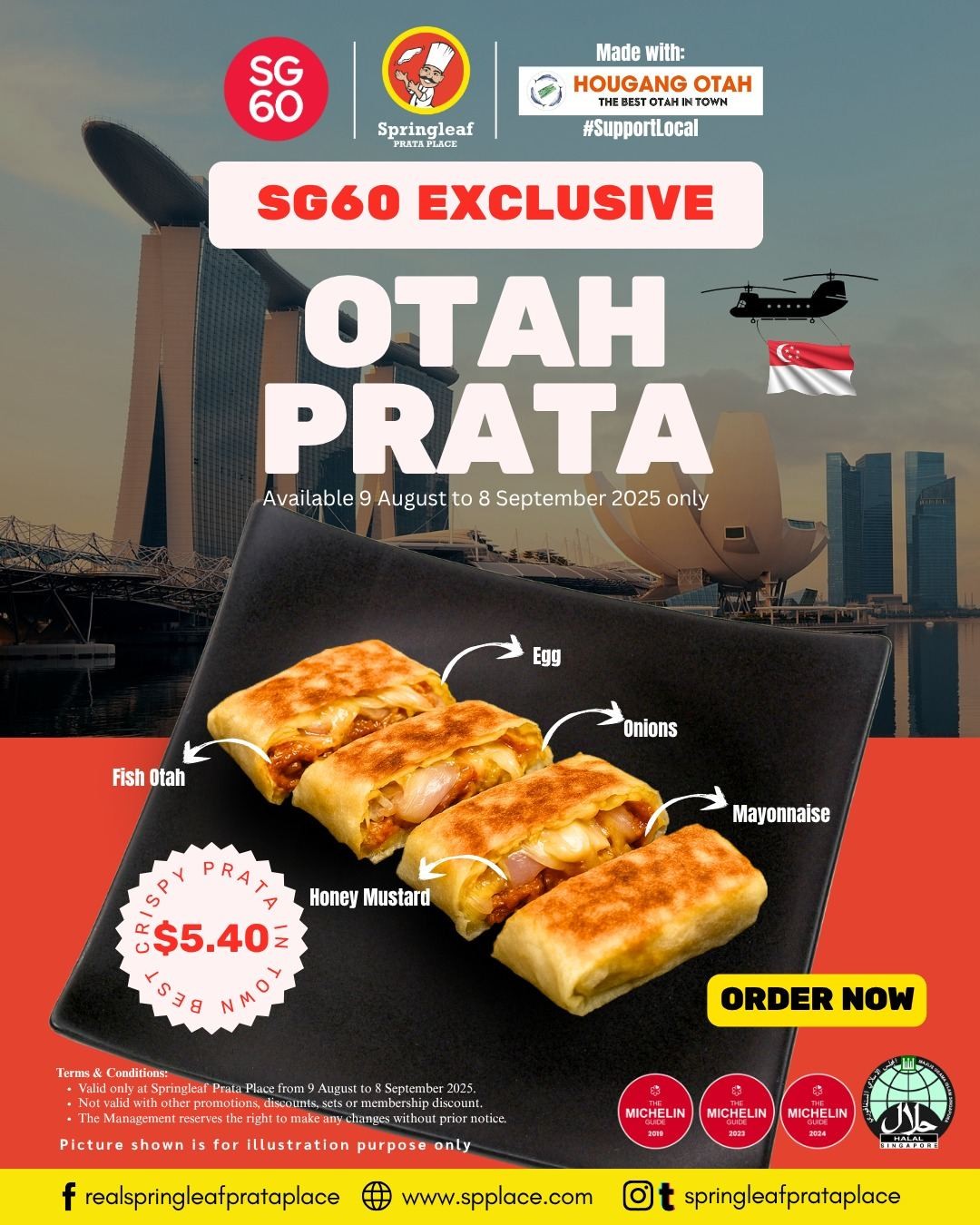 National Day in Singapore is always a time for celebration, and what better way to add to the festivities than with a food deal that celebrates local flavours? Springleaf Prata Place, a household name for delicious crispy pratas and inventive menu creations, is rolling out a special SG60 promotion that’s bound to get foodies excited. From 9 August to 8 September 2025, diners can enjoy their limited-edition SG60 Otah Prata for only $5.40 — a flavour-packed treat that’s available at all Springleaf Prata Place outlets across the island.