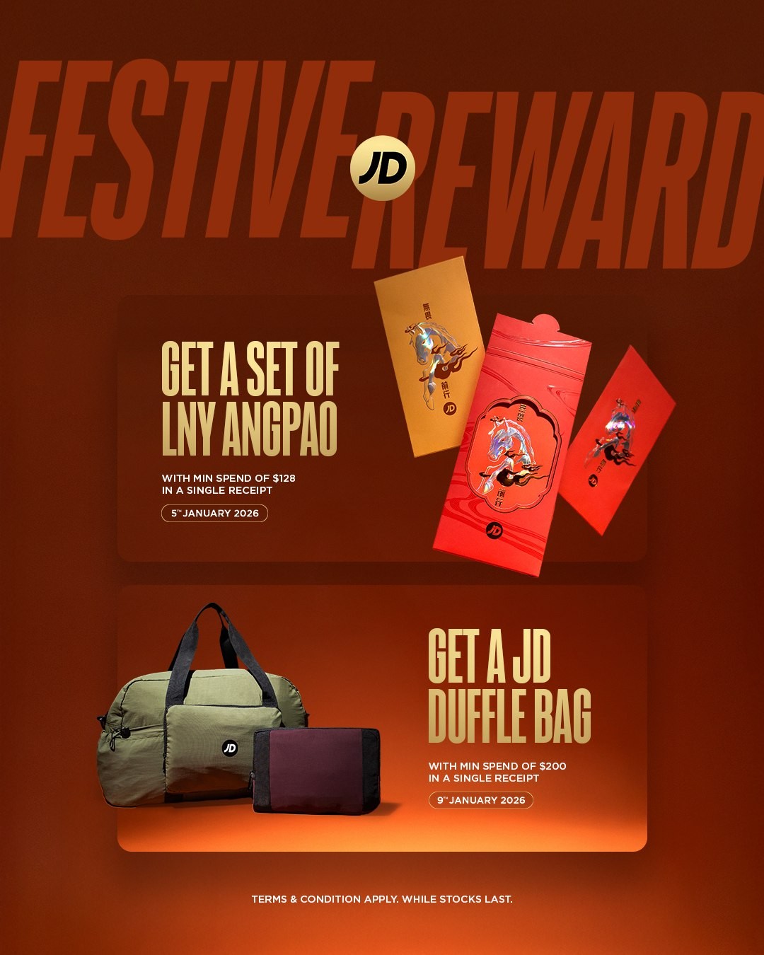Earlier in the month, JD Sports also ran an exclusive Angpao set promotion on 5 January for purchases above $128. But it’s the 9 January Duffle Bag promotion that’s capturing the spotlight. It’s a timely incentive for shoppers to step into the new year with fresh gear and a unique collector’s item.
